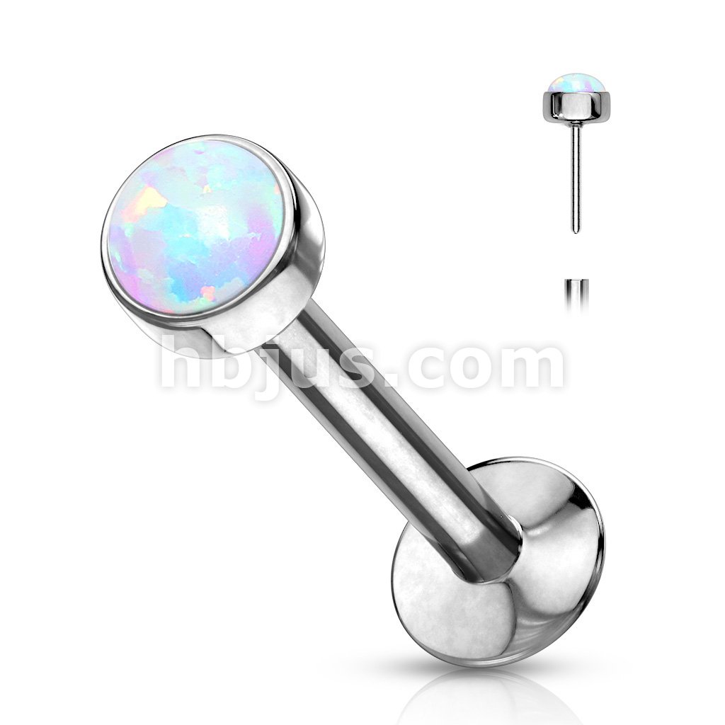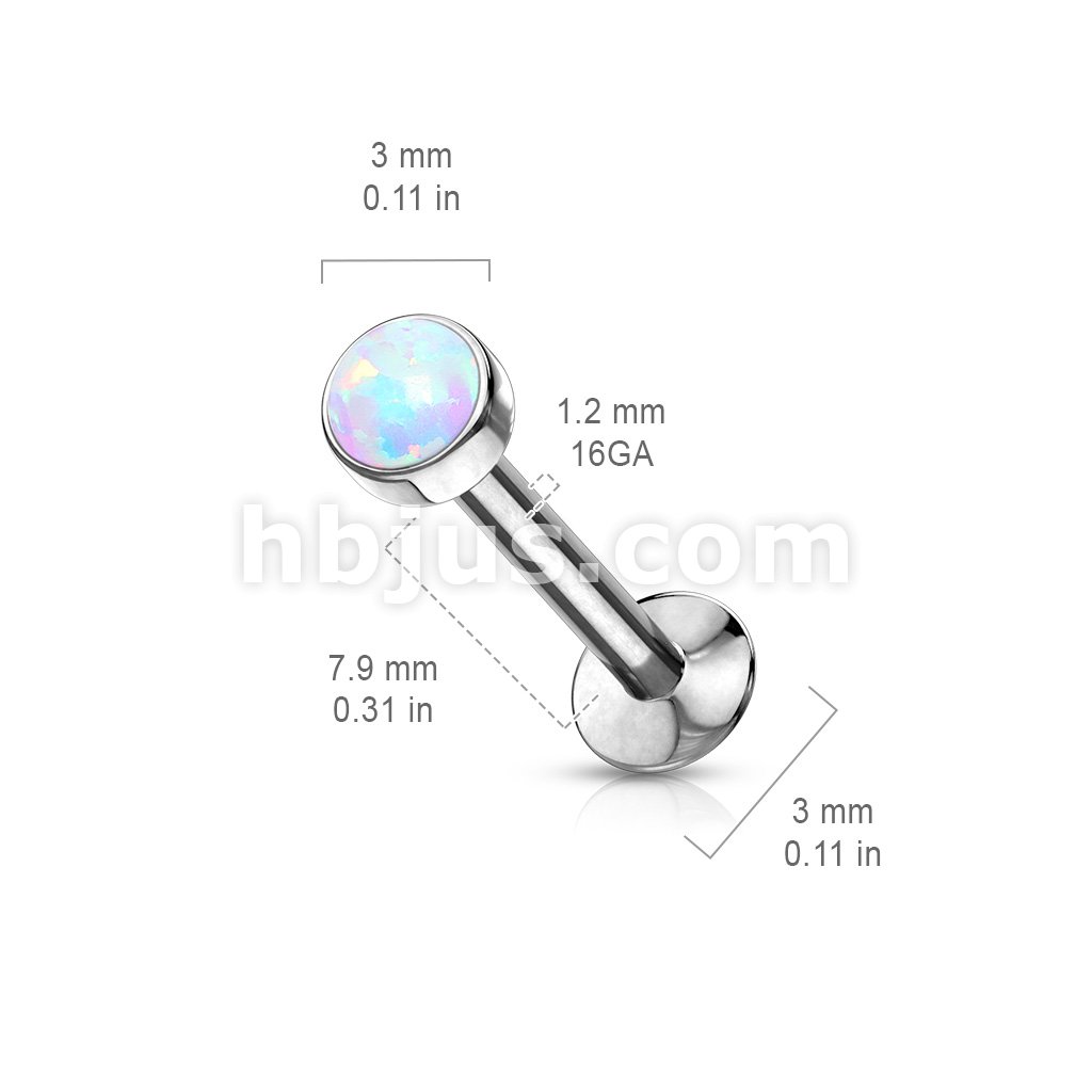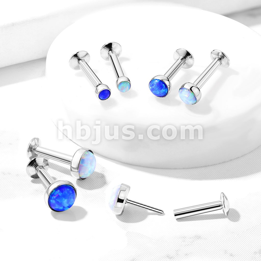 Push In Opal Flat Set Top 316L Surgical Steel Labret, Monroe, Flat Back Stud.