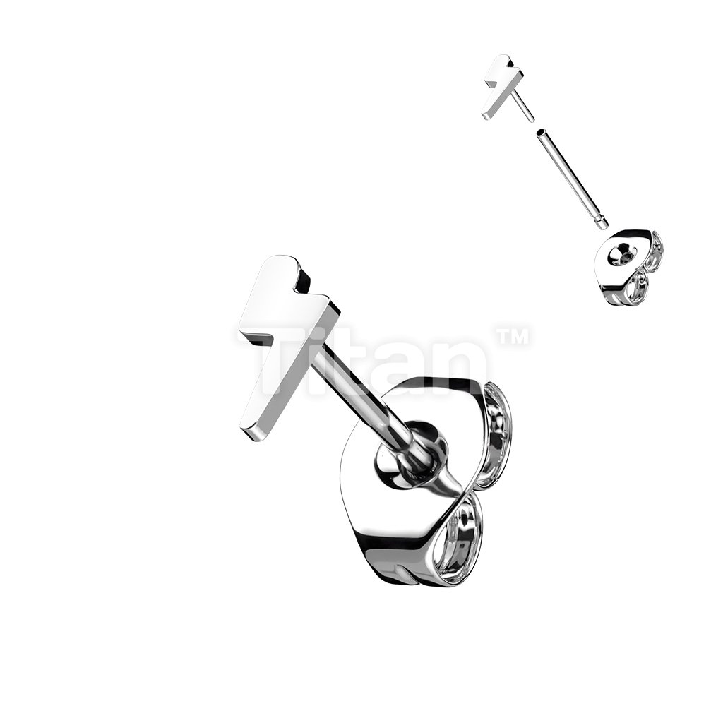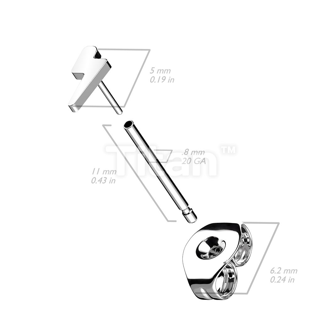 1pc Implant Grade Titanium Threadless Earring Stud With Lightning Bolt Shaped Top