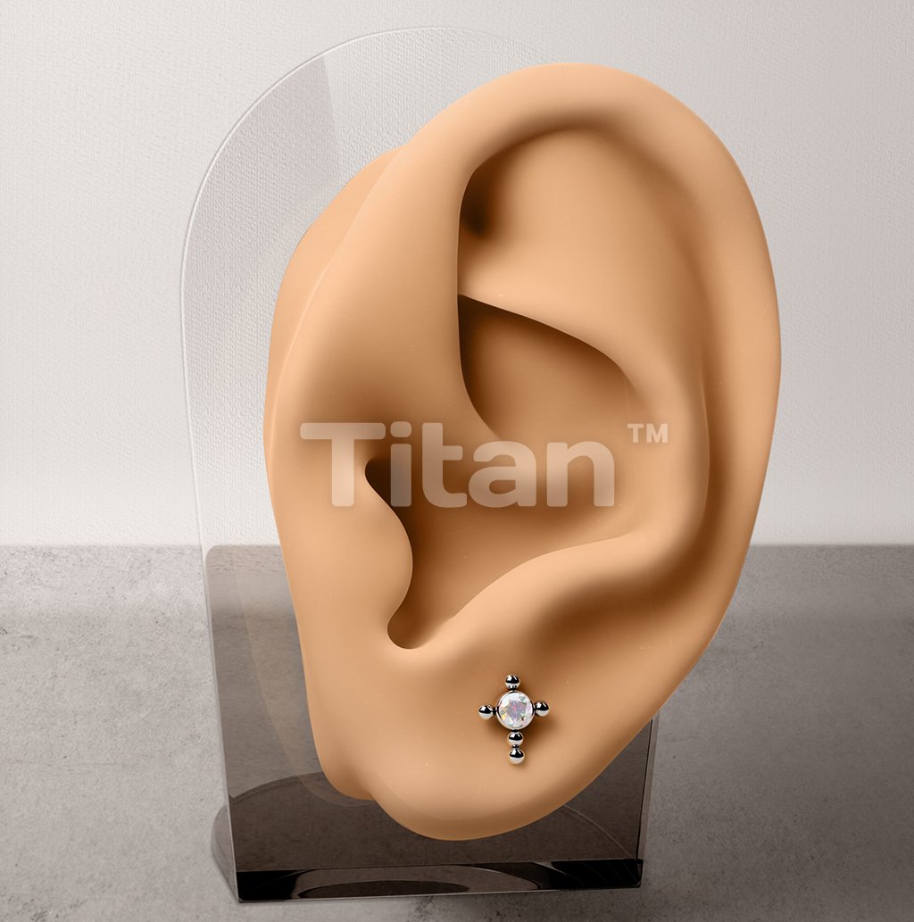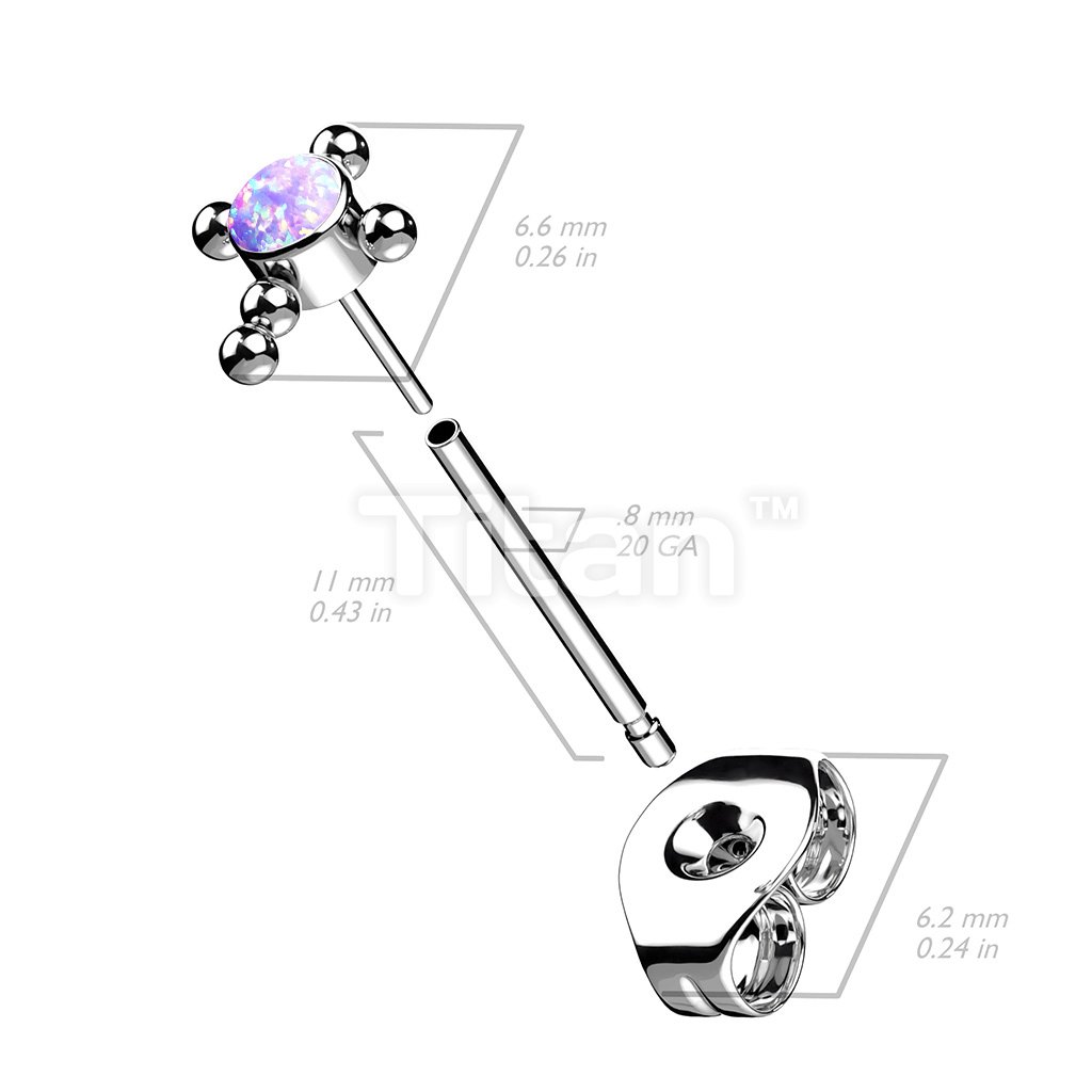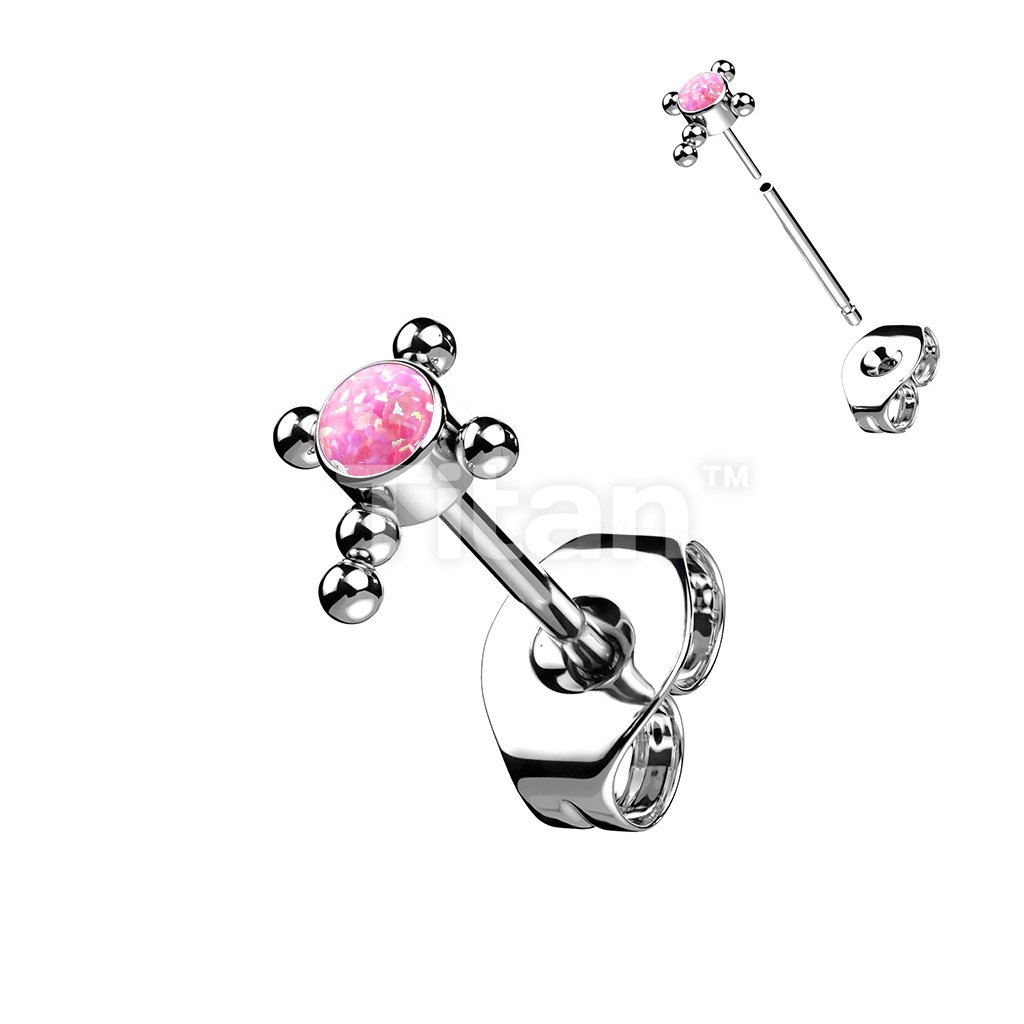 1pc Implant Grade Titanium Threadless Earring Stud With CZ or Opal Center Beaded Ball Cross Top