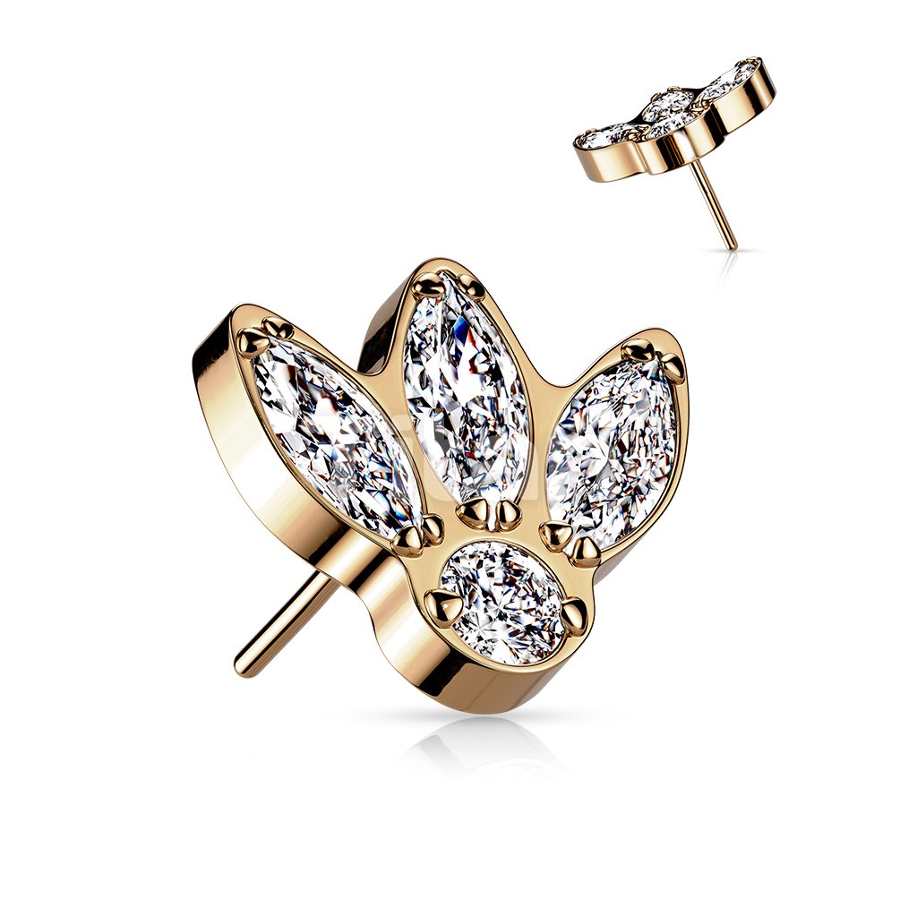 Implant Grade Titanium Threadless Push in Flower Base Labret With CZ Flower Top