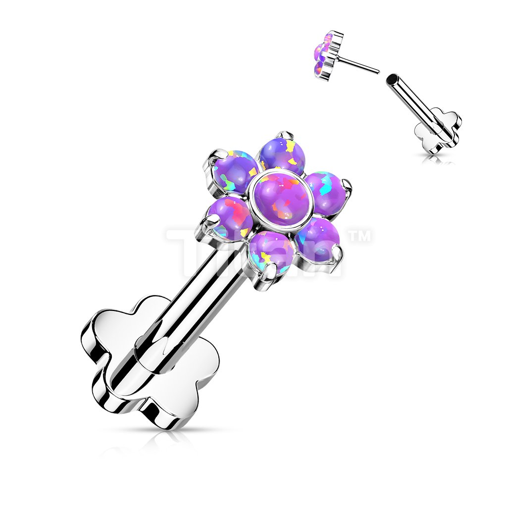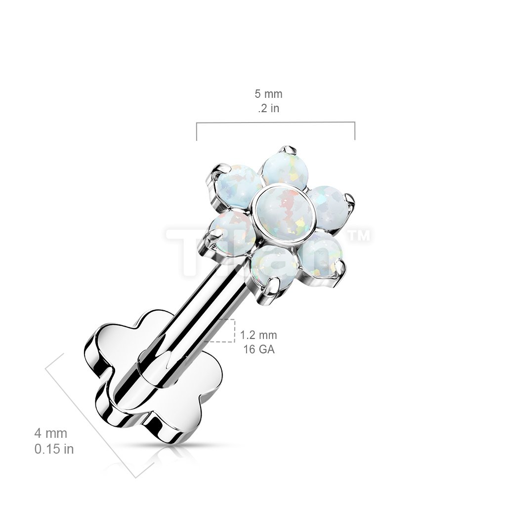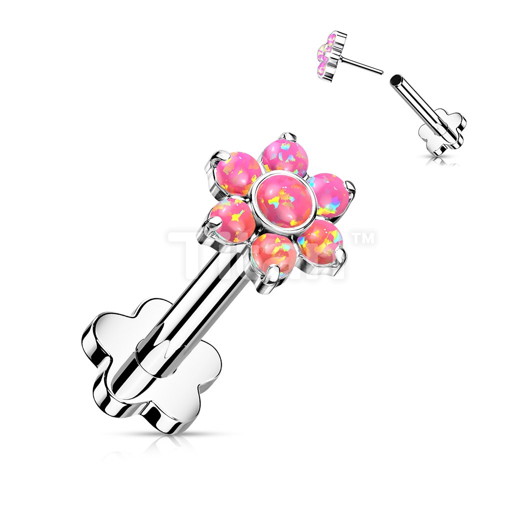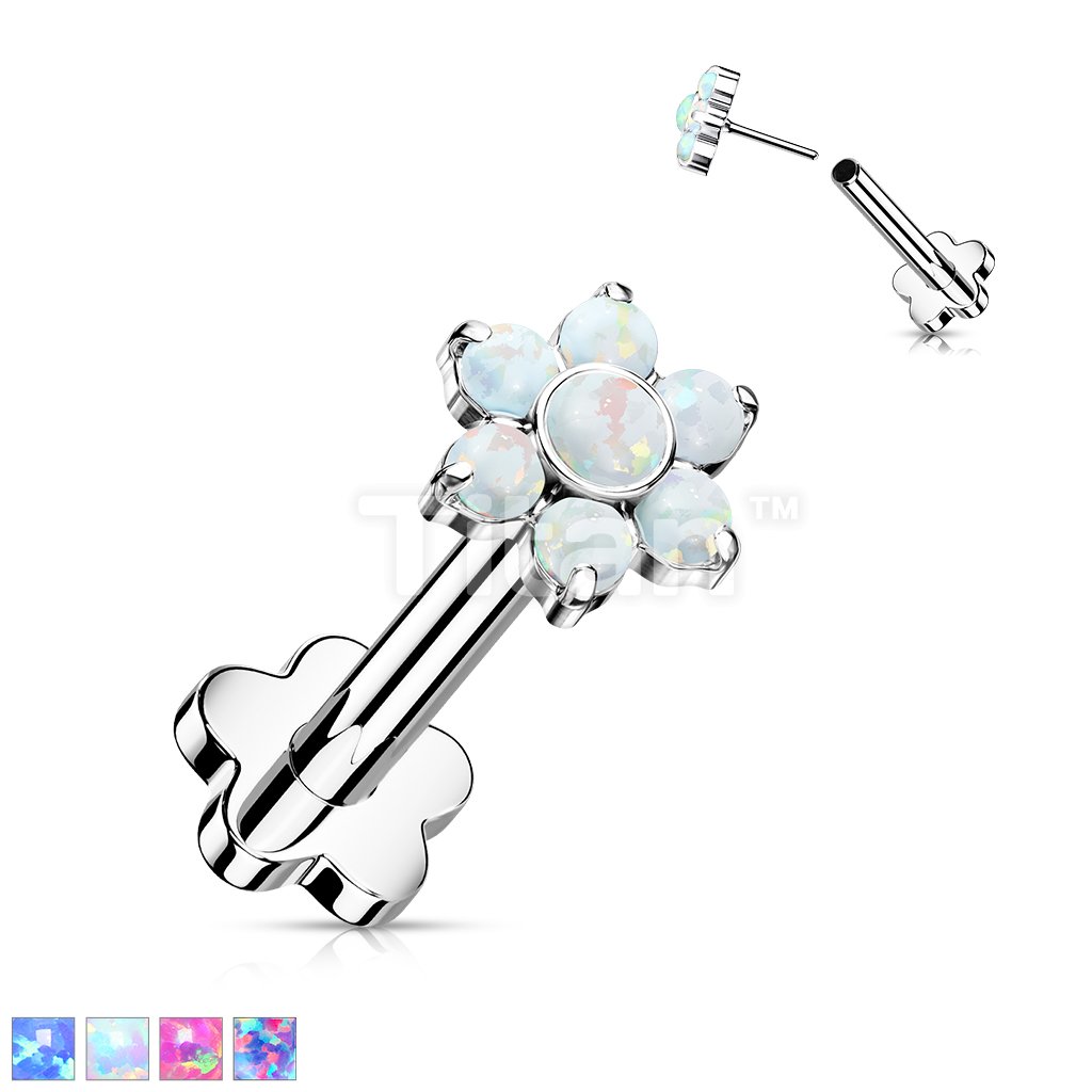 Implant Grade Titanium Threadless Push in Flower Base Labret With Opal Flower Top