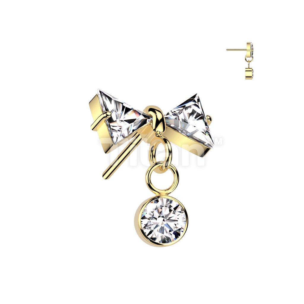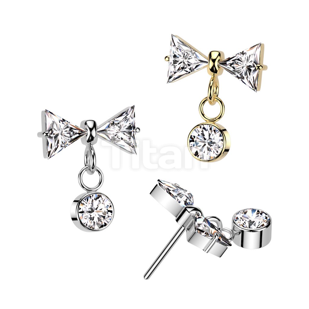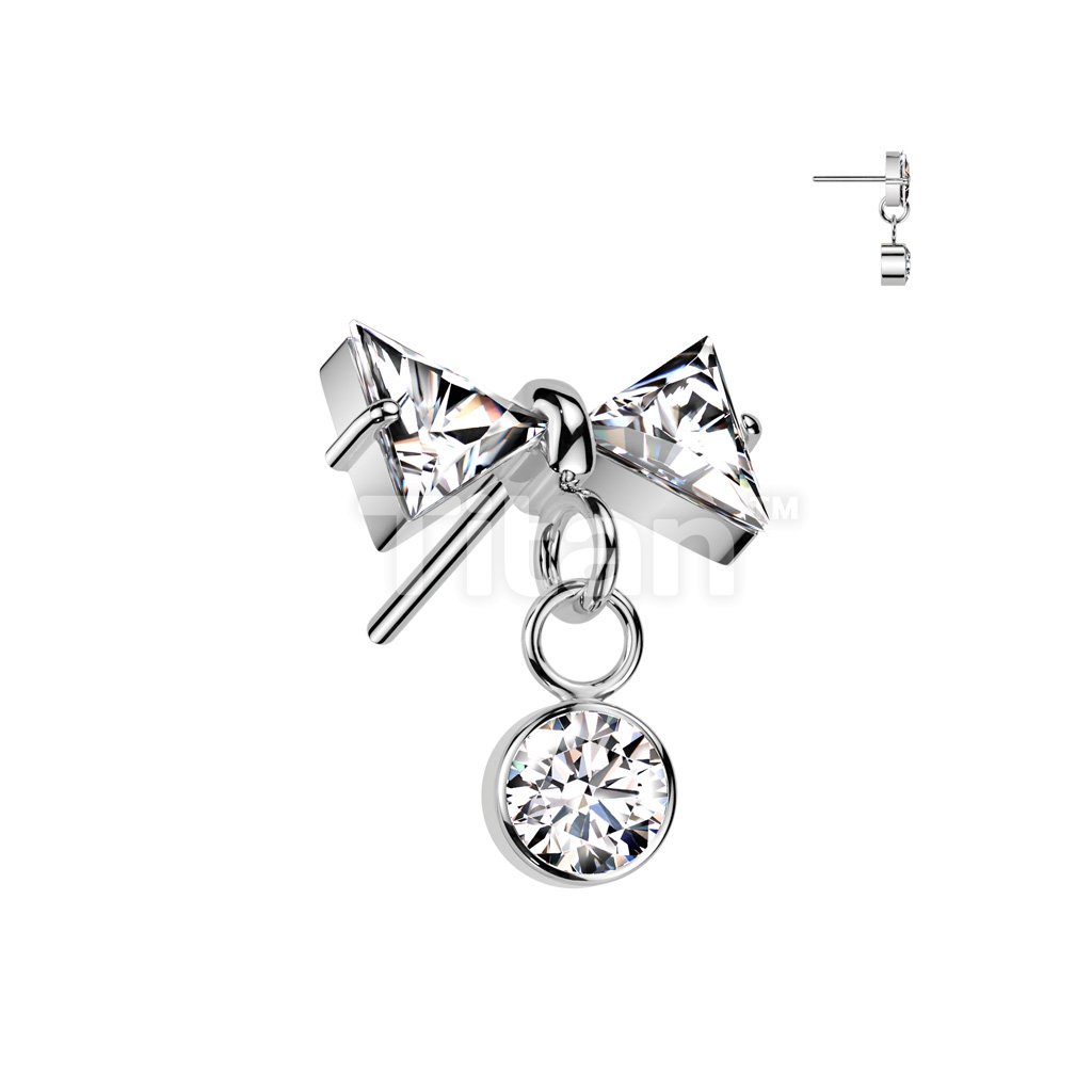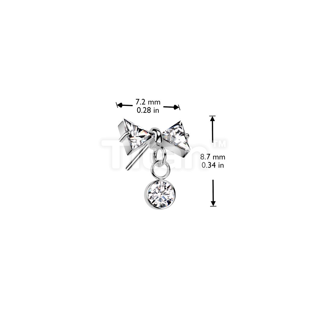 Implant Grade Titanium Threadless Push In CZ Bowtie Top With Bezel Set CZ Dangle