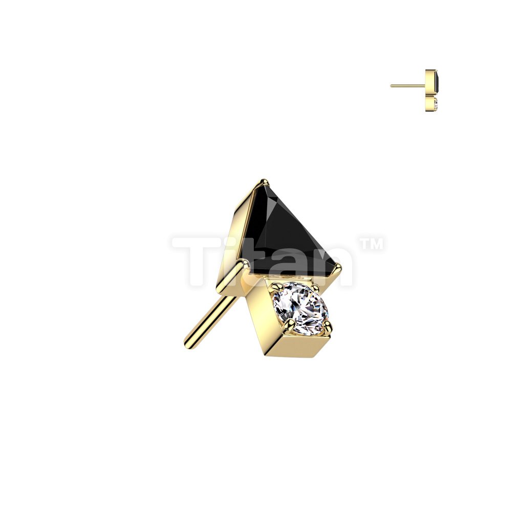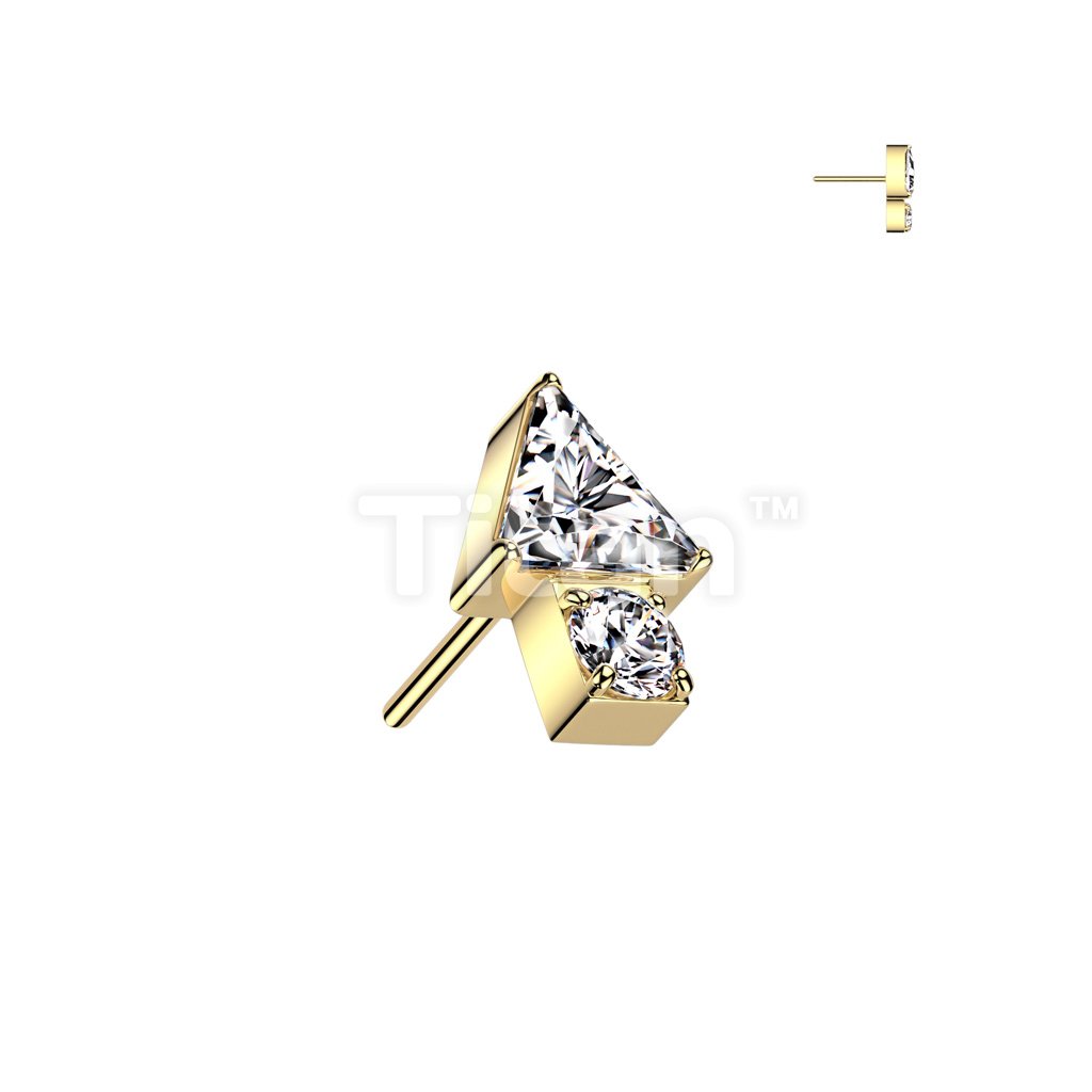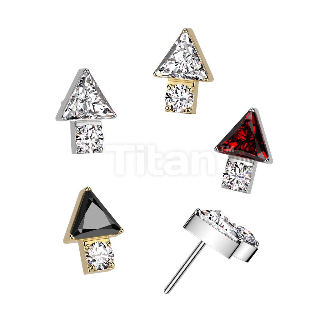 Implant Grade Titanium Threadless Push In Triangle CZ Top With Round CZ Bottom