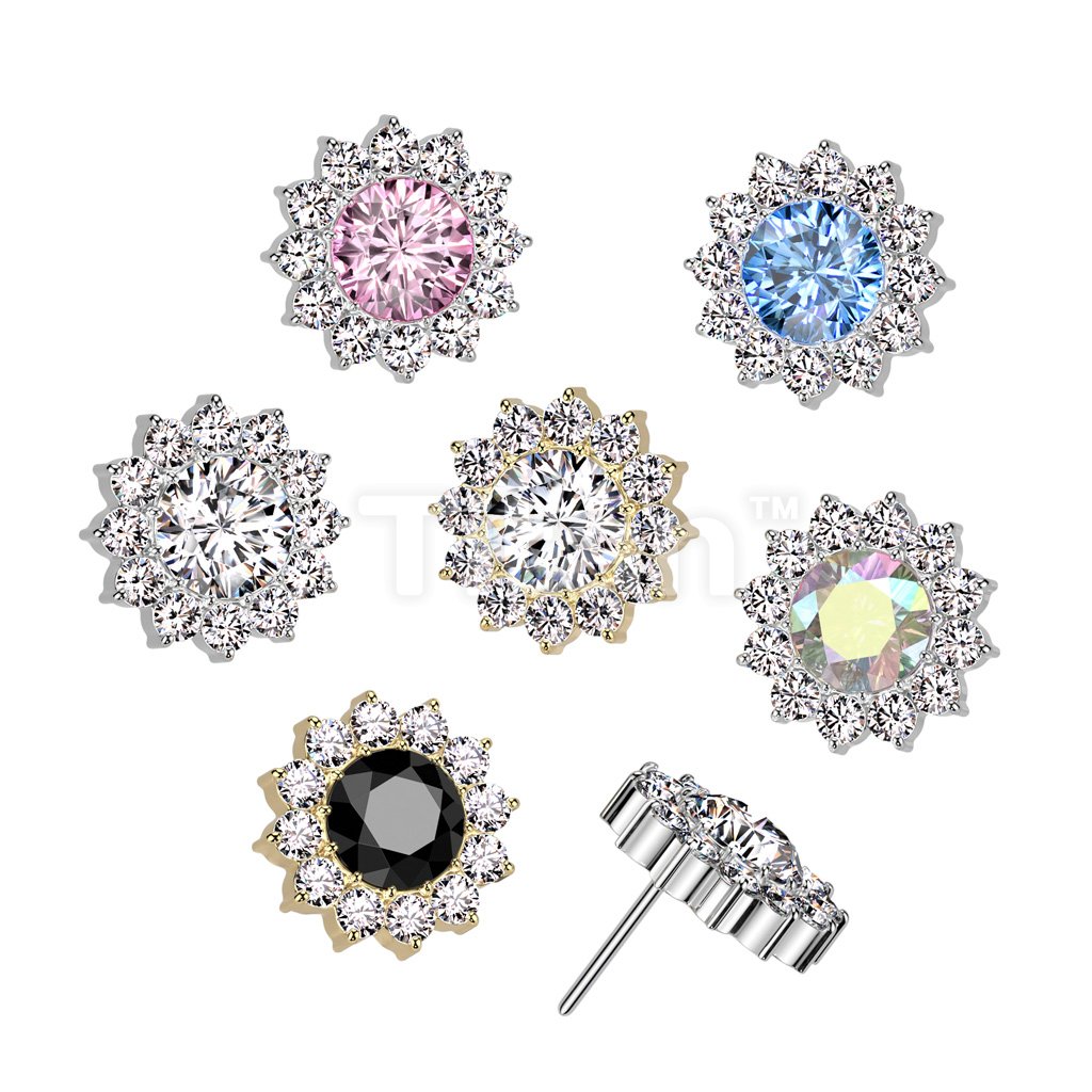 Implant Grade Titanium Threadless Push In CZ Pave Flower Top