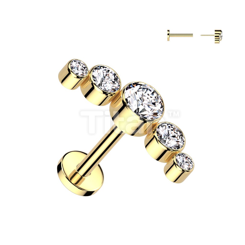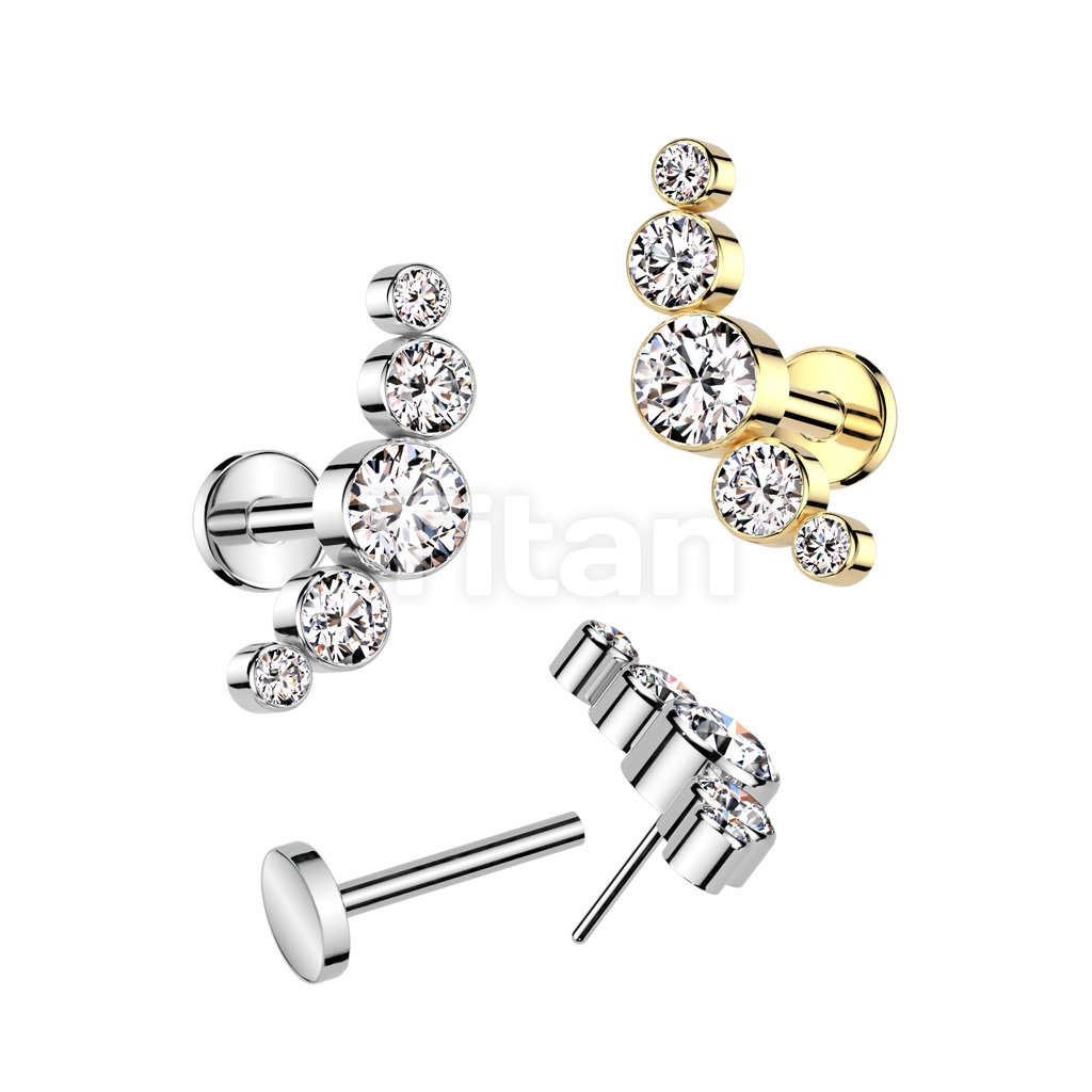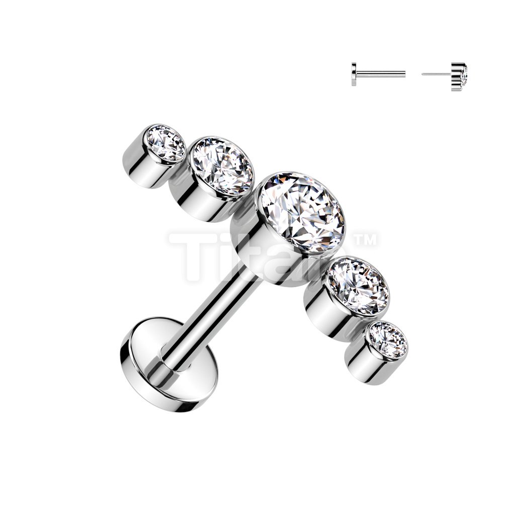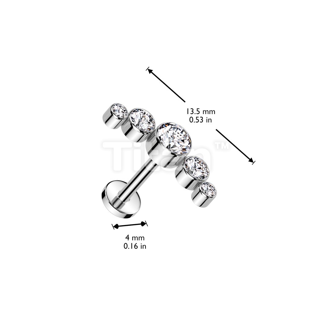 Implant Grade Titanium Threadless Push In Labret With 5 Round Bezel Set Swarovski Crystal Curve Top