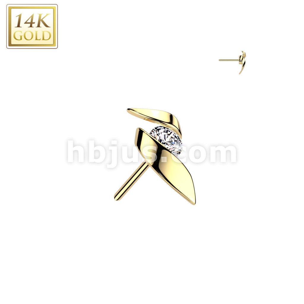 14K Gold Threadless Push In Ribbon With CZ Center