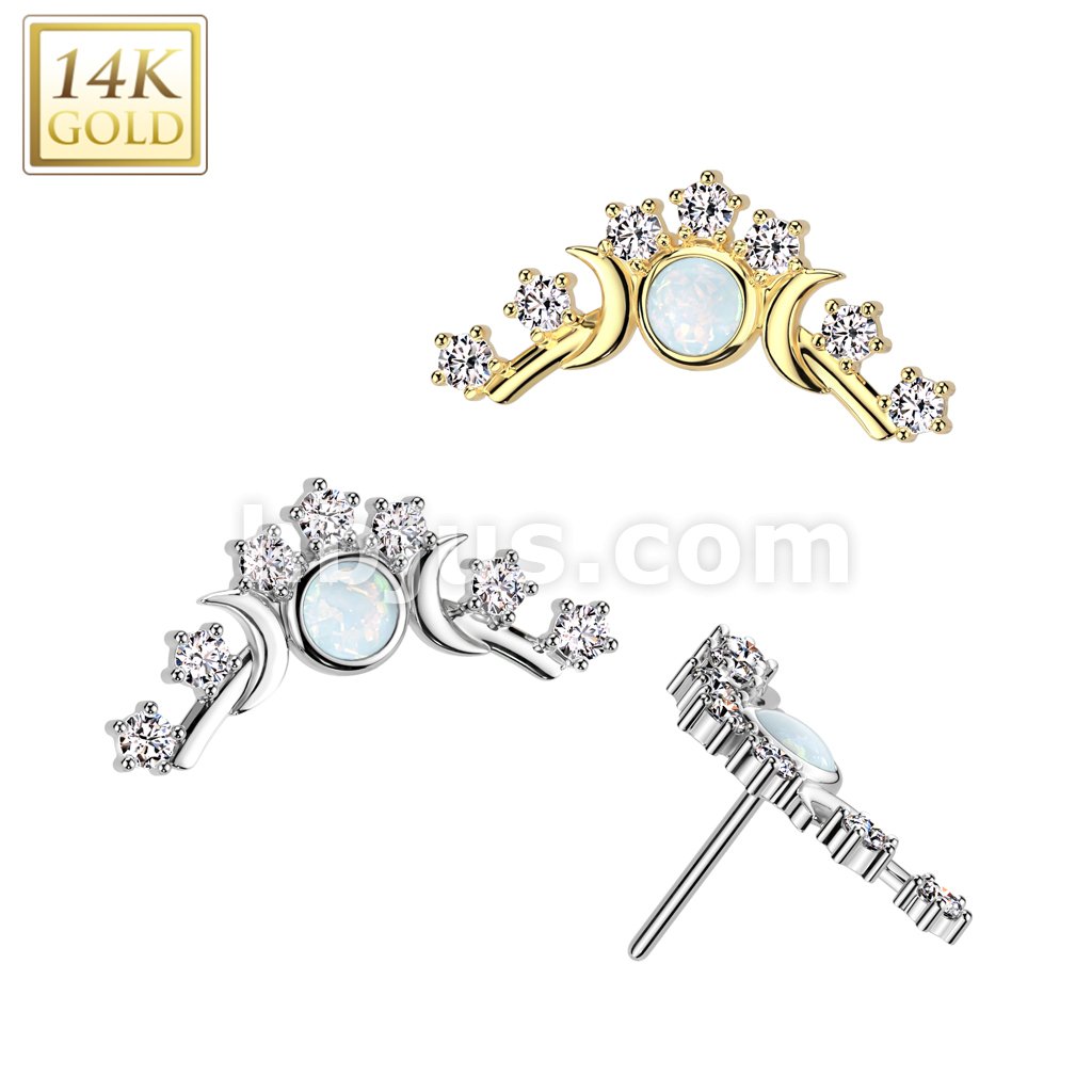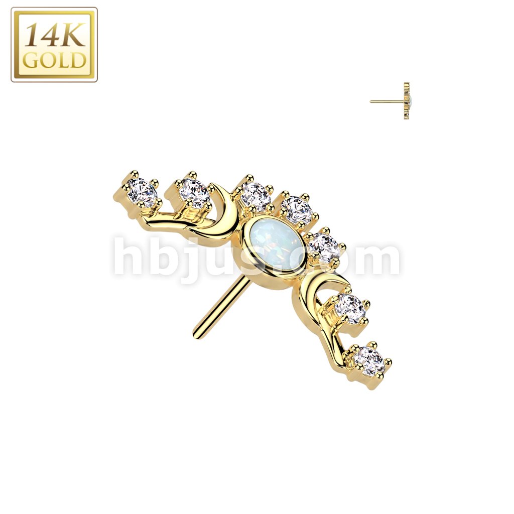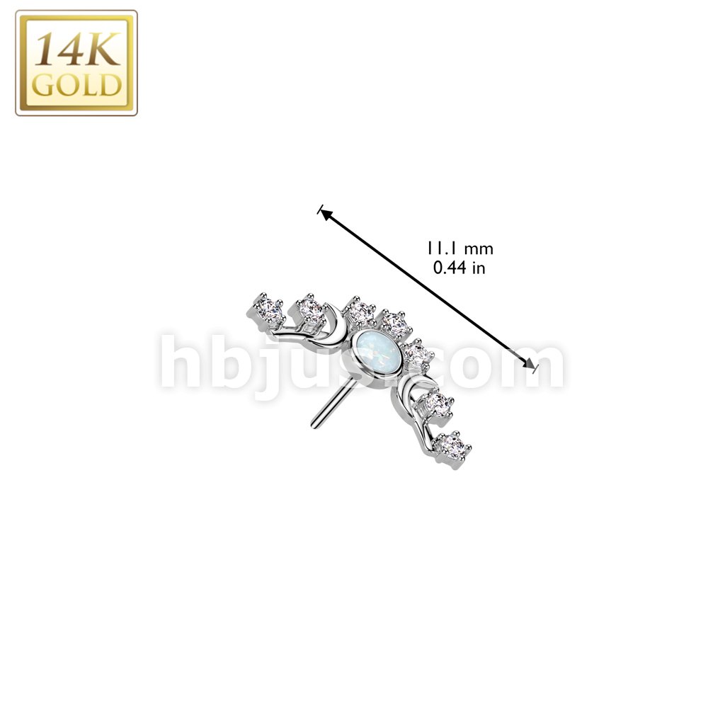 14K Gold Threadless Push In Prong Set CZ Fan With Opal Center