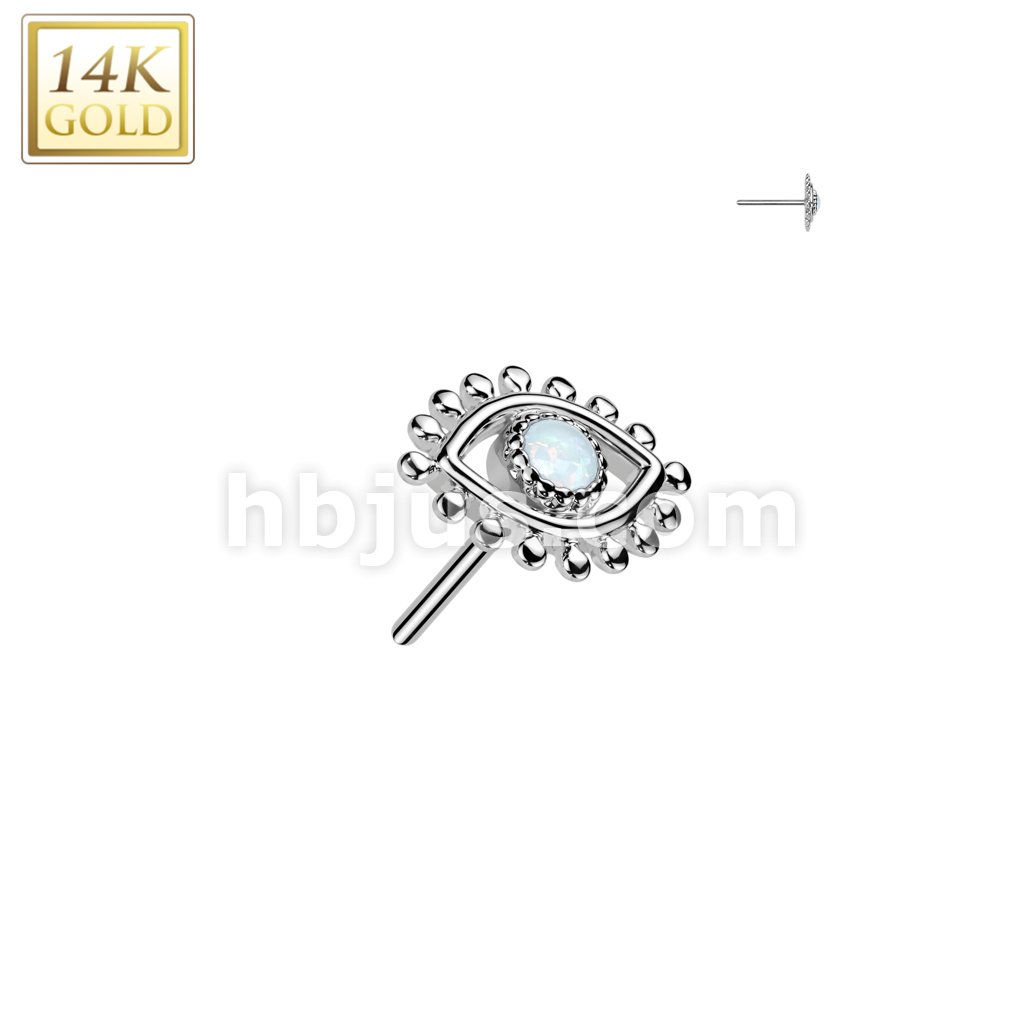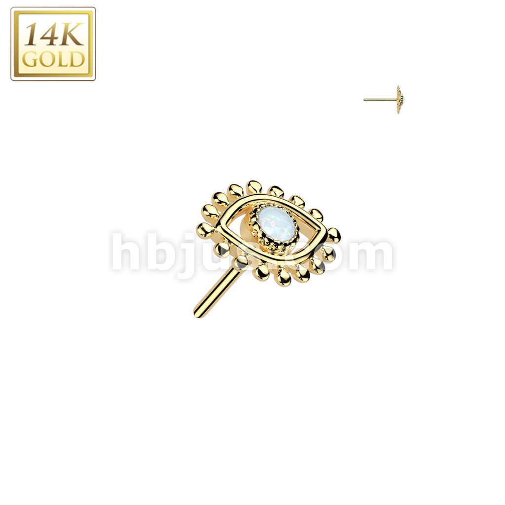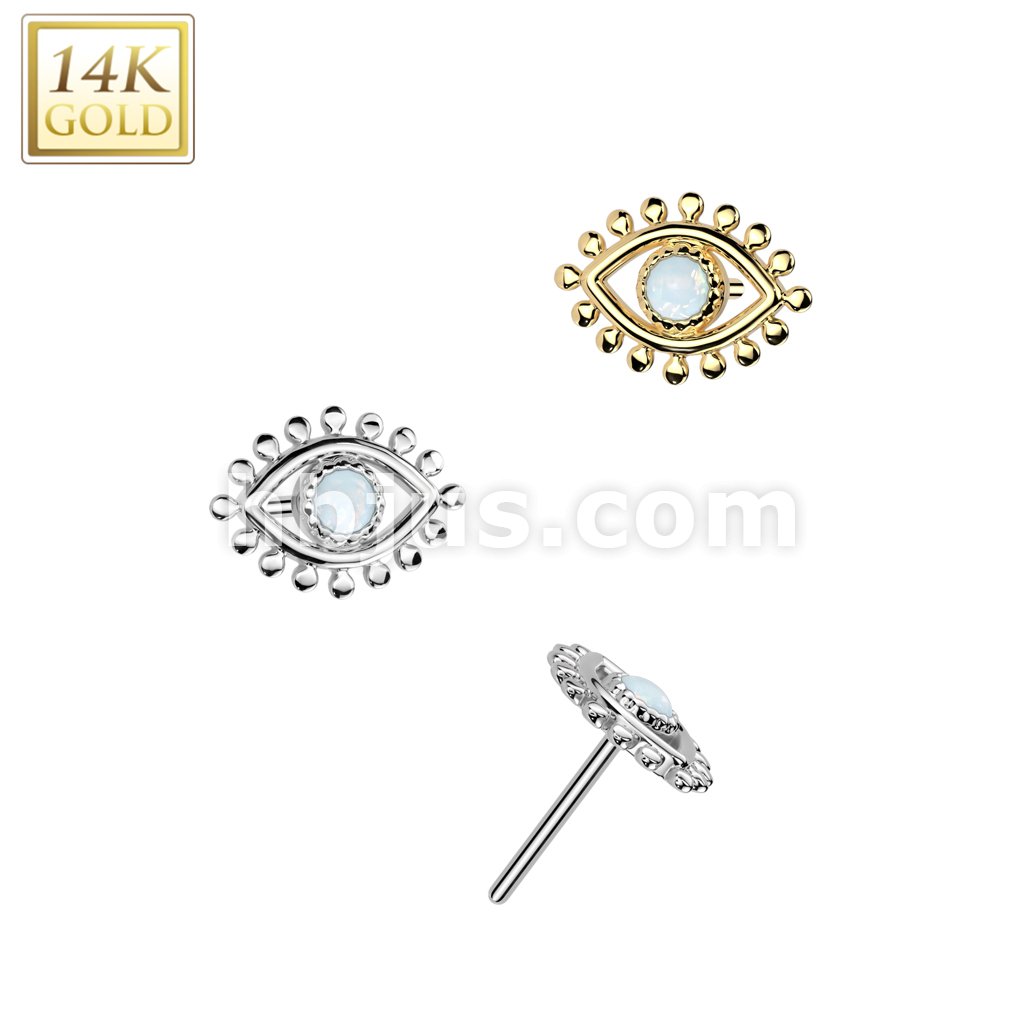14K Gold Threadless Push In Prong Set CZ Fan With Opal Center