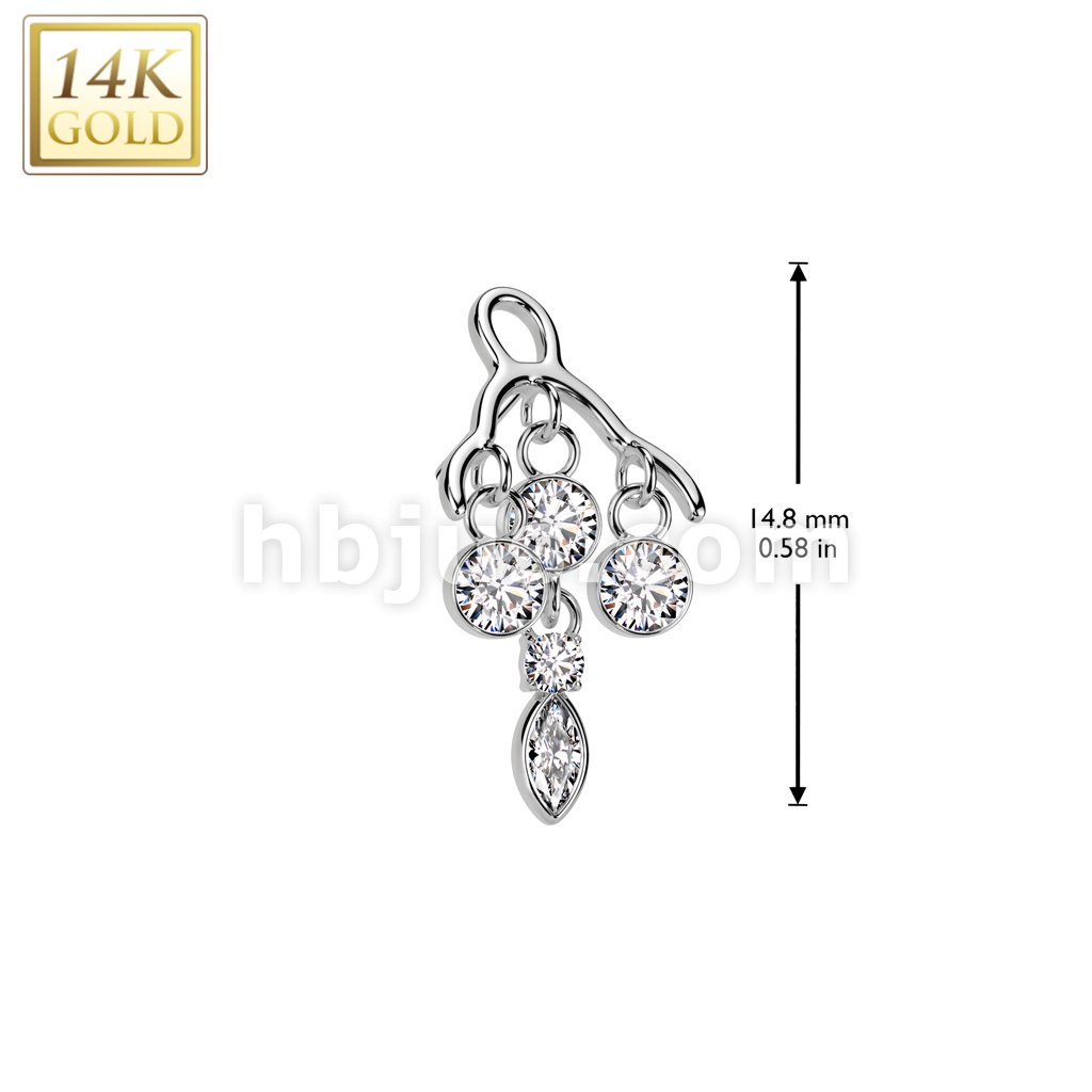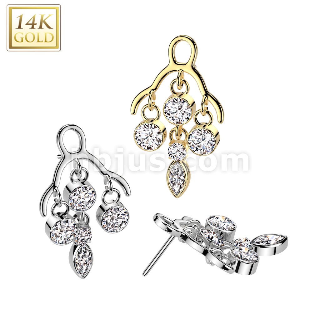 14K Gold Threadless Push In Bezel Set CZ Chandelier Top