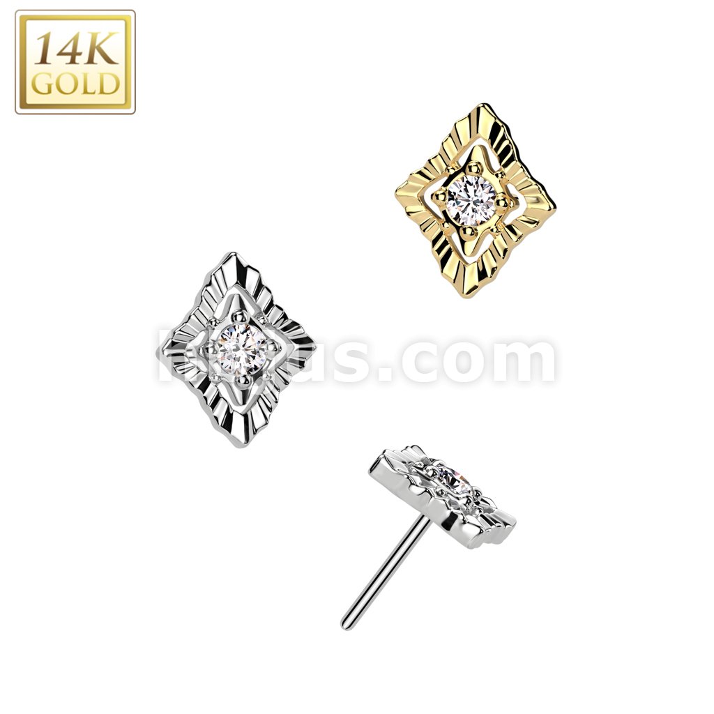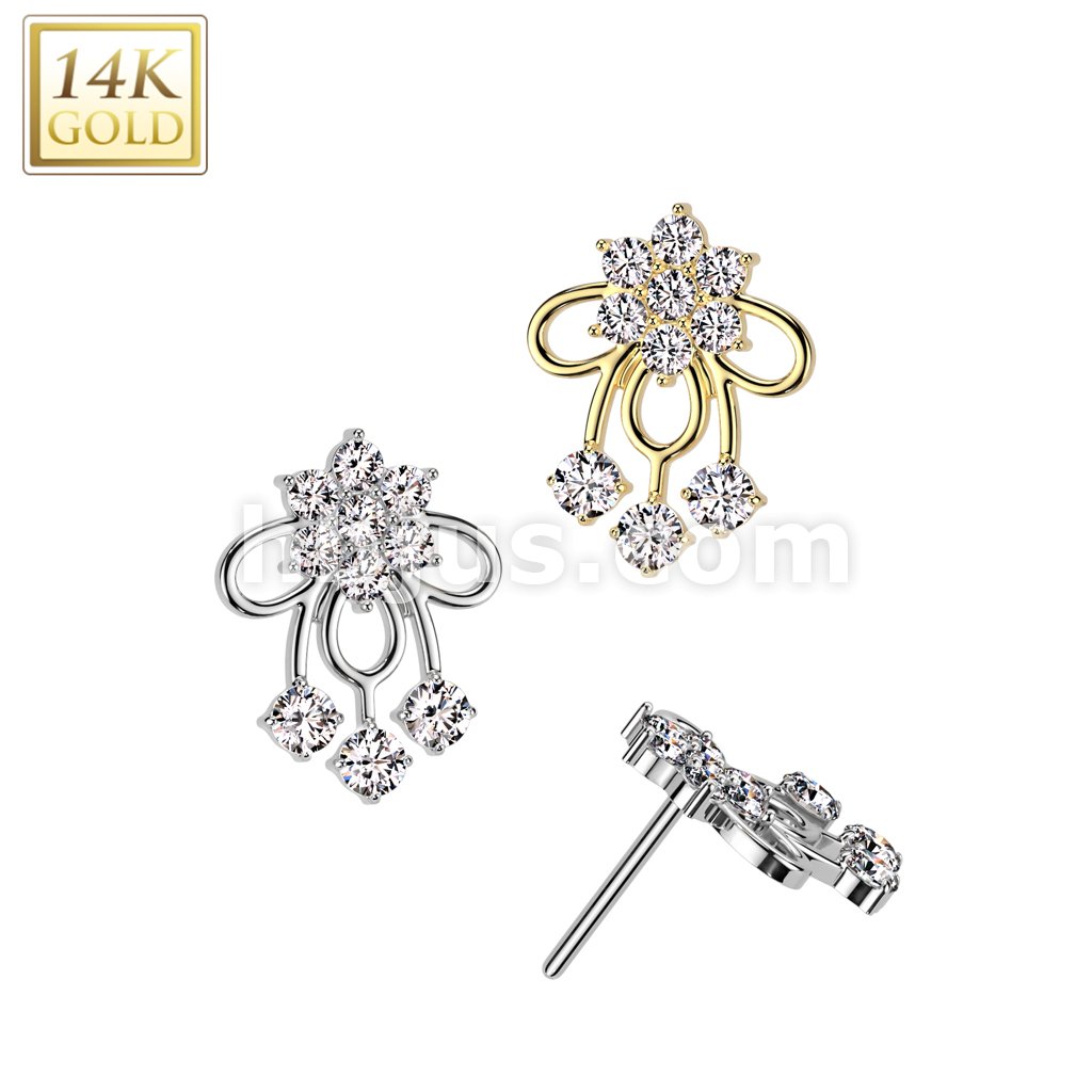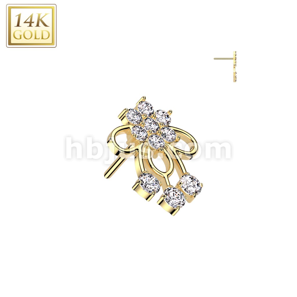 14K Gold Threadless Push In CZ Flower Ribbon Top
