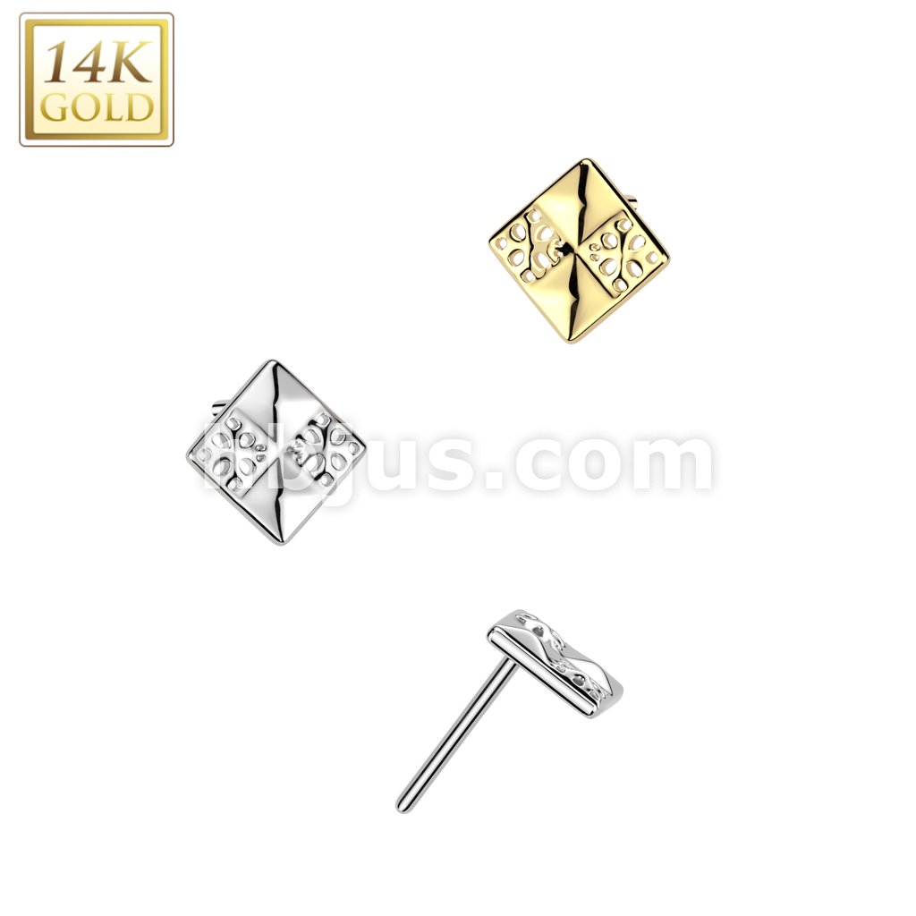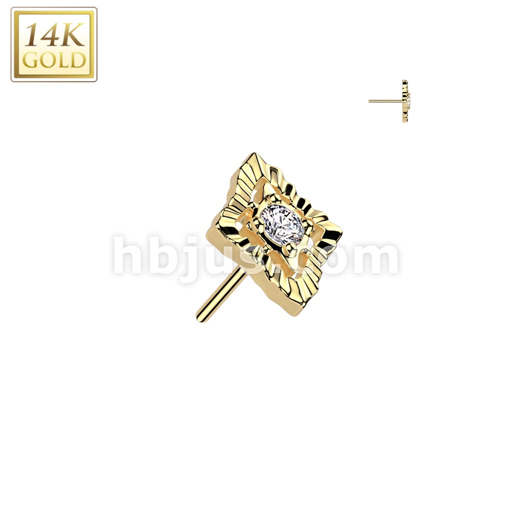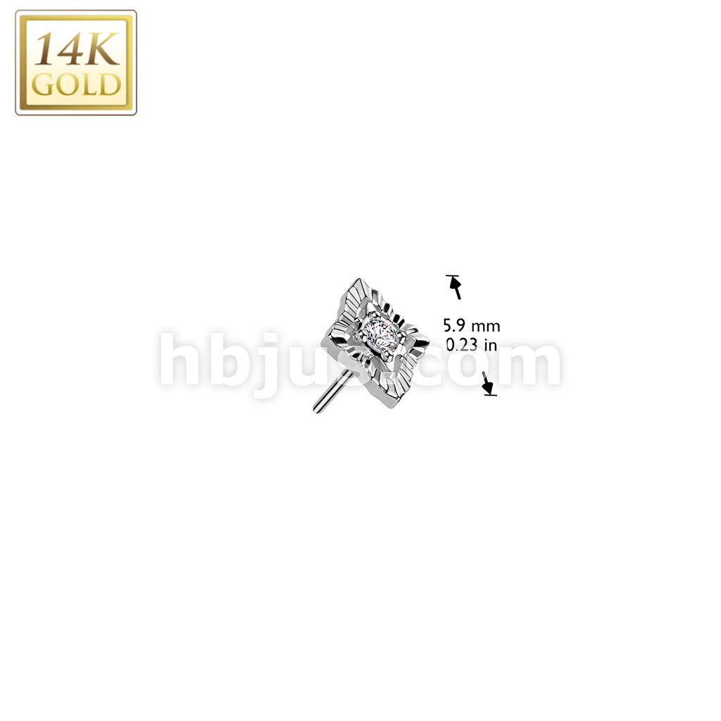14K Gold Threadless Push In CZ Flower Ribbon Top