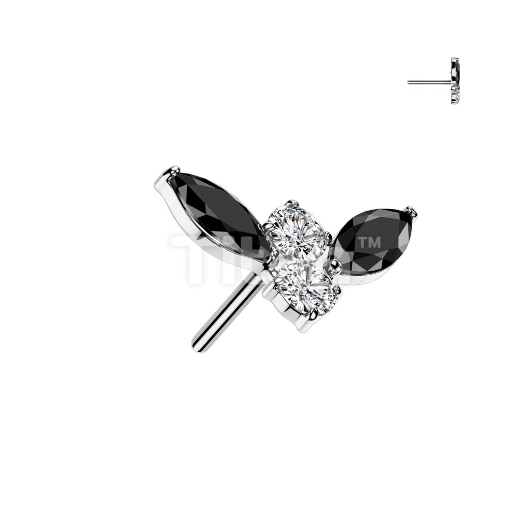 Implant Grade Titanium Threadless Push In Butterfly Top With Marquise and Pave CZ Wings