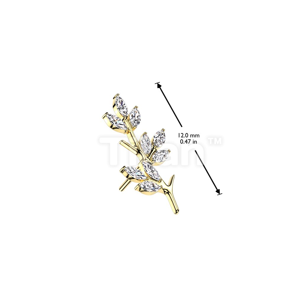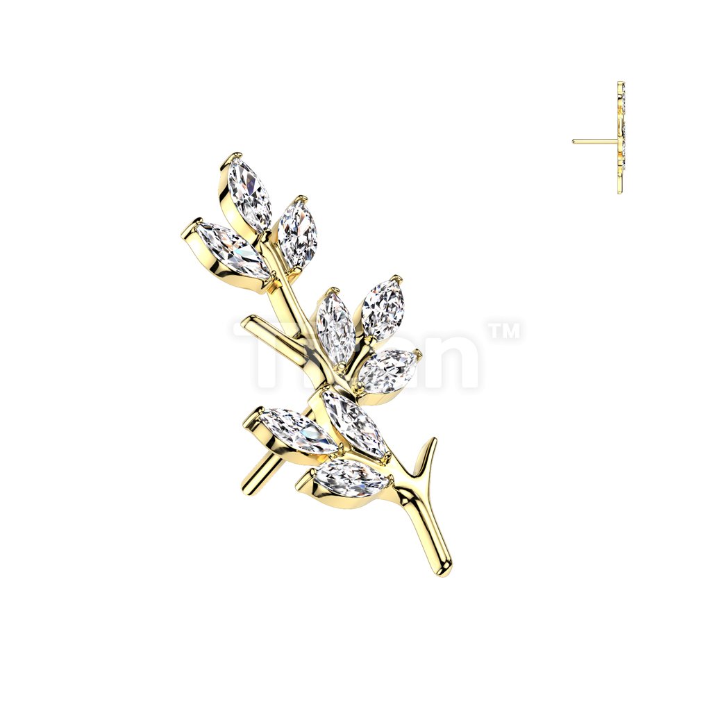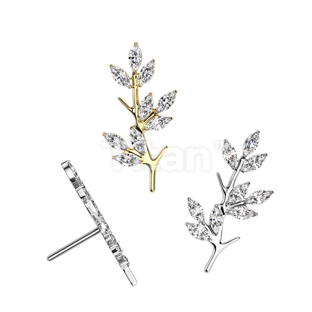 Implant Grade Titanium Threadless Push In Vine With Marquise CZ Leaves Top