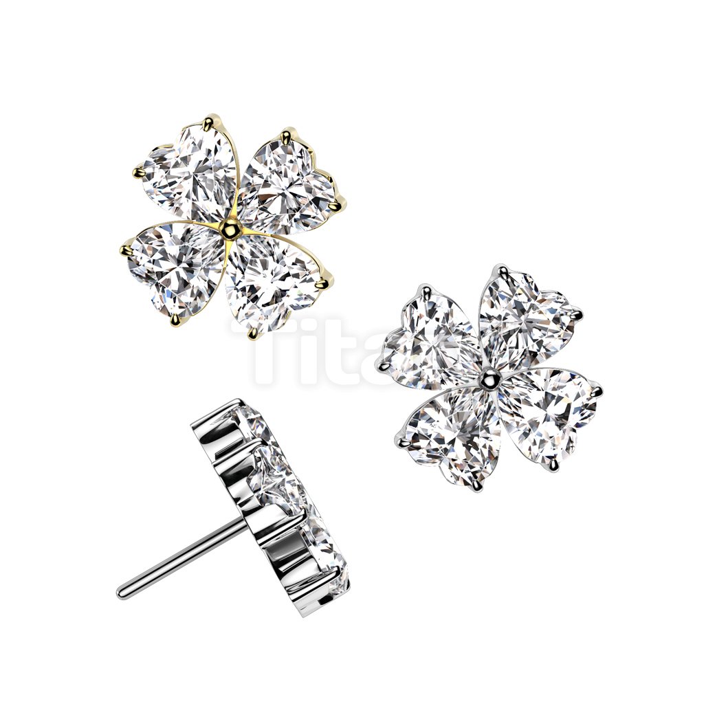 Implant Grade Titanium Threadless Push In Prong Set Heart CZ Shamrock Top