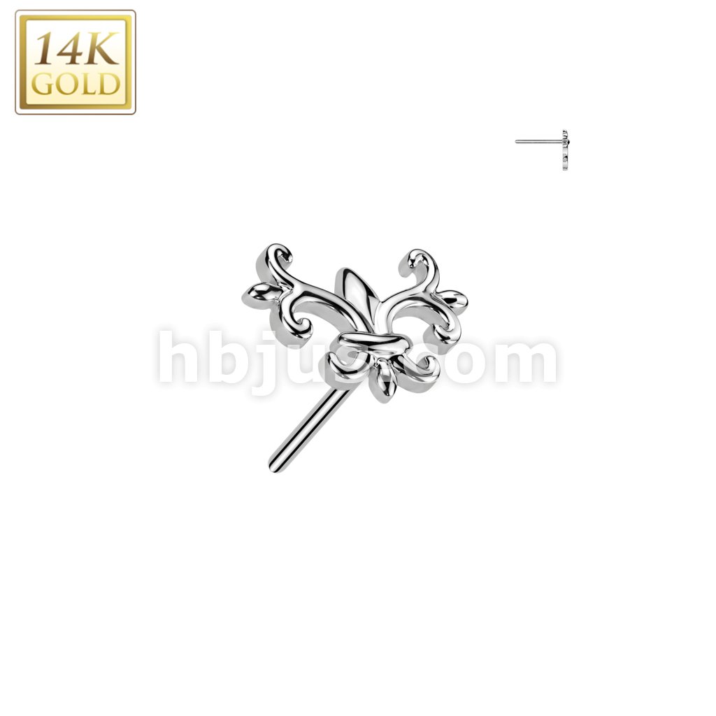 14K Gold Threadless Push In Fleur De Lis Top