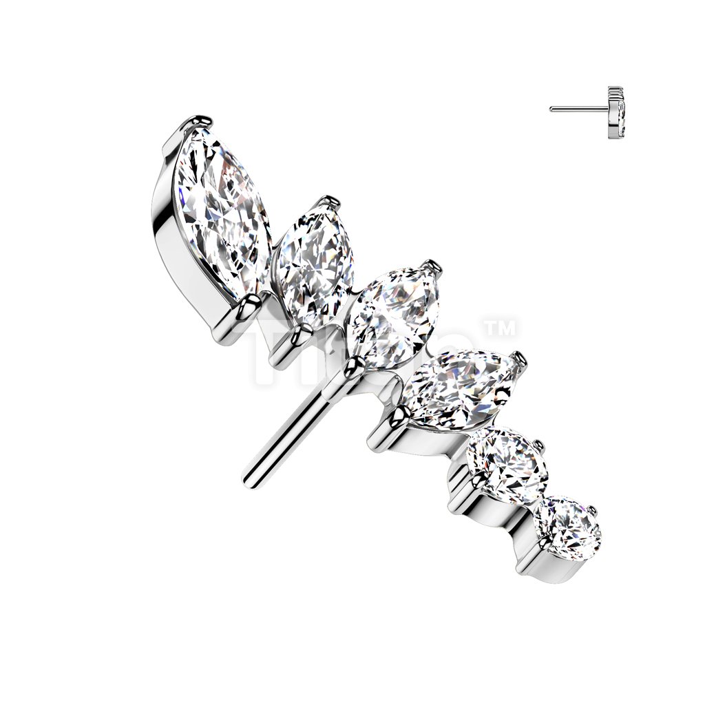Implant Grade Titanium Threadless Push In Marquise CZ Fan With Round CZ Top