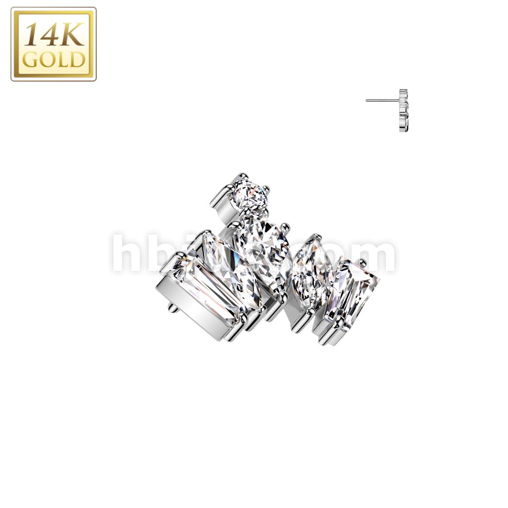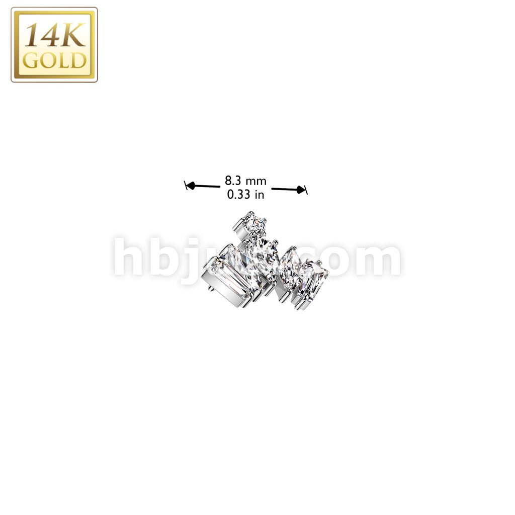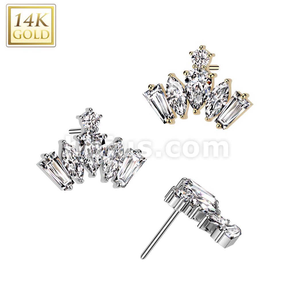 14K Gold Threadless Push In CZ Crown Top