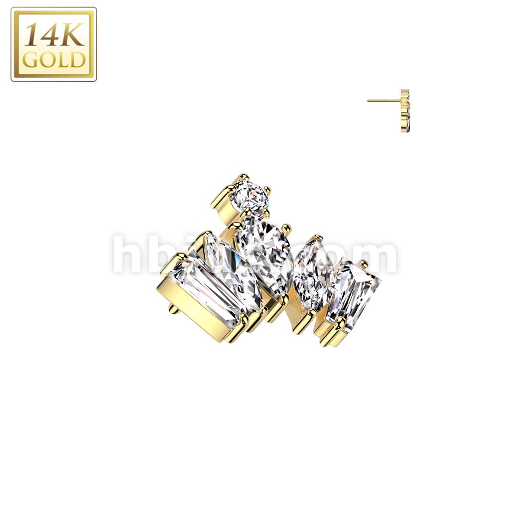14K Gold Threadless Push In Shield Top
