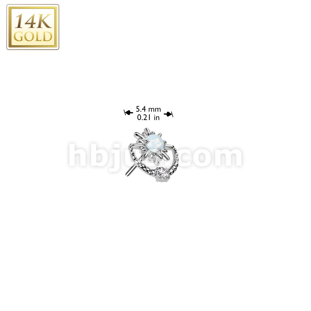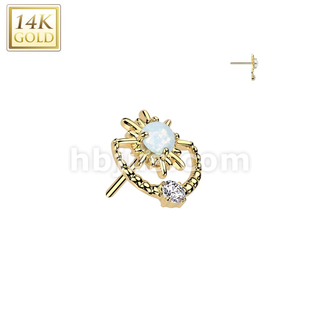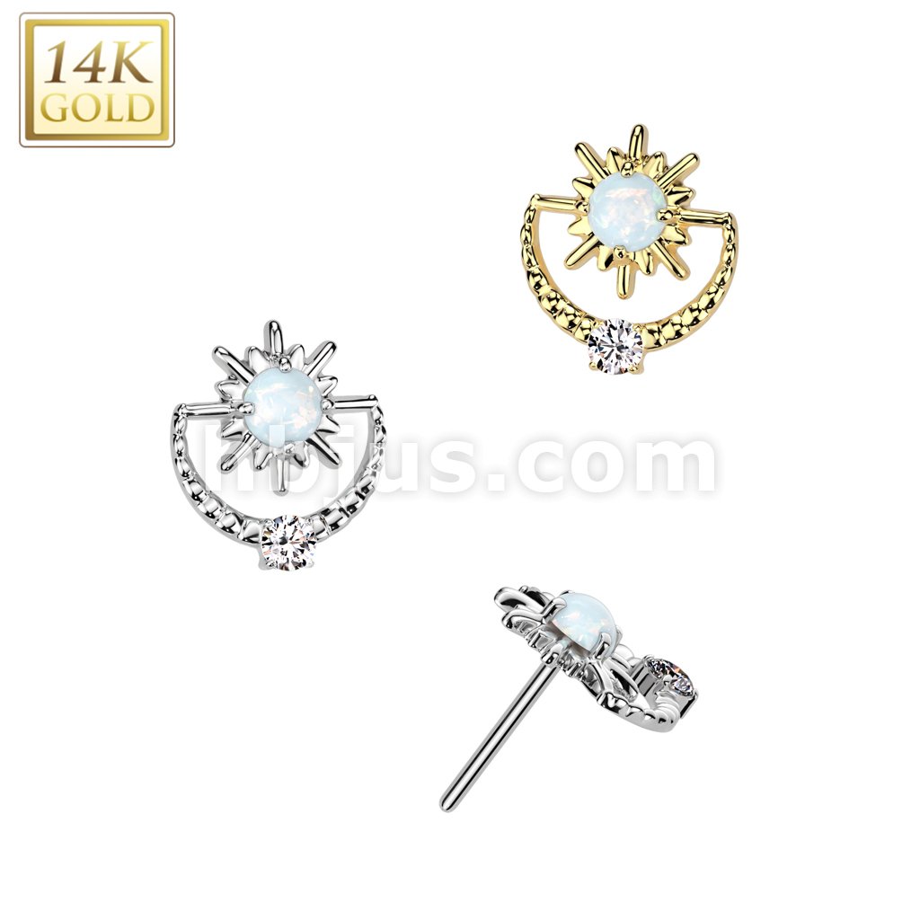 14K Gold Threadless Push In Sunburst With Opal Center and CZ Top