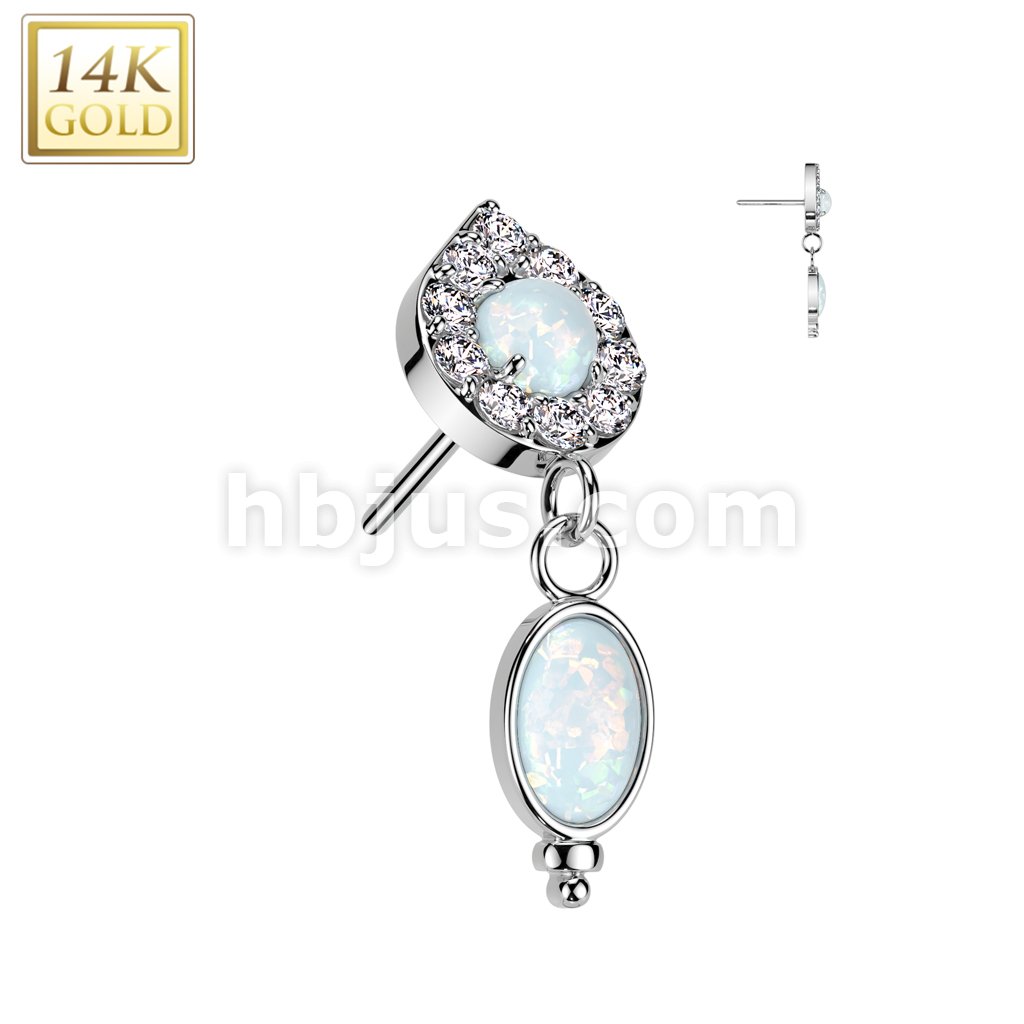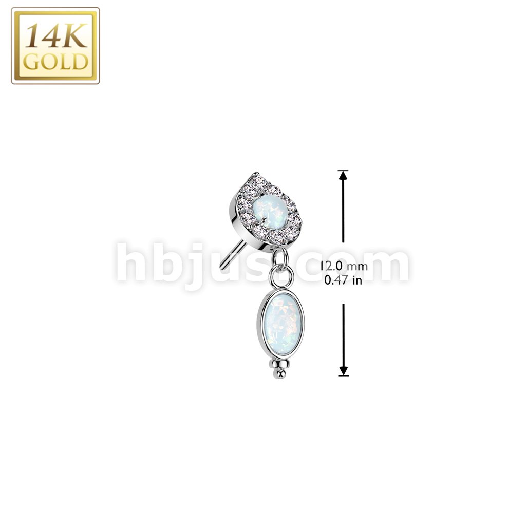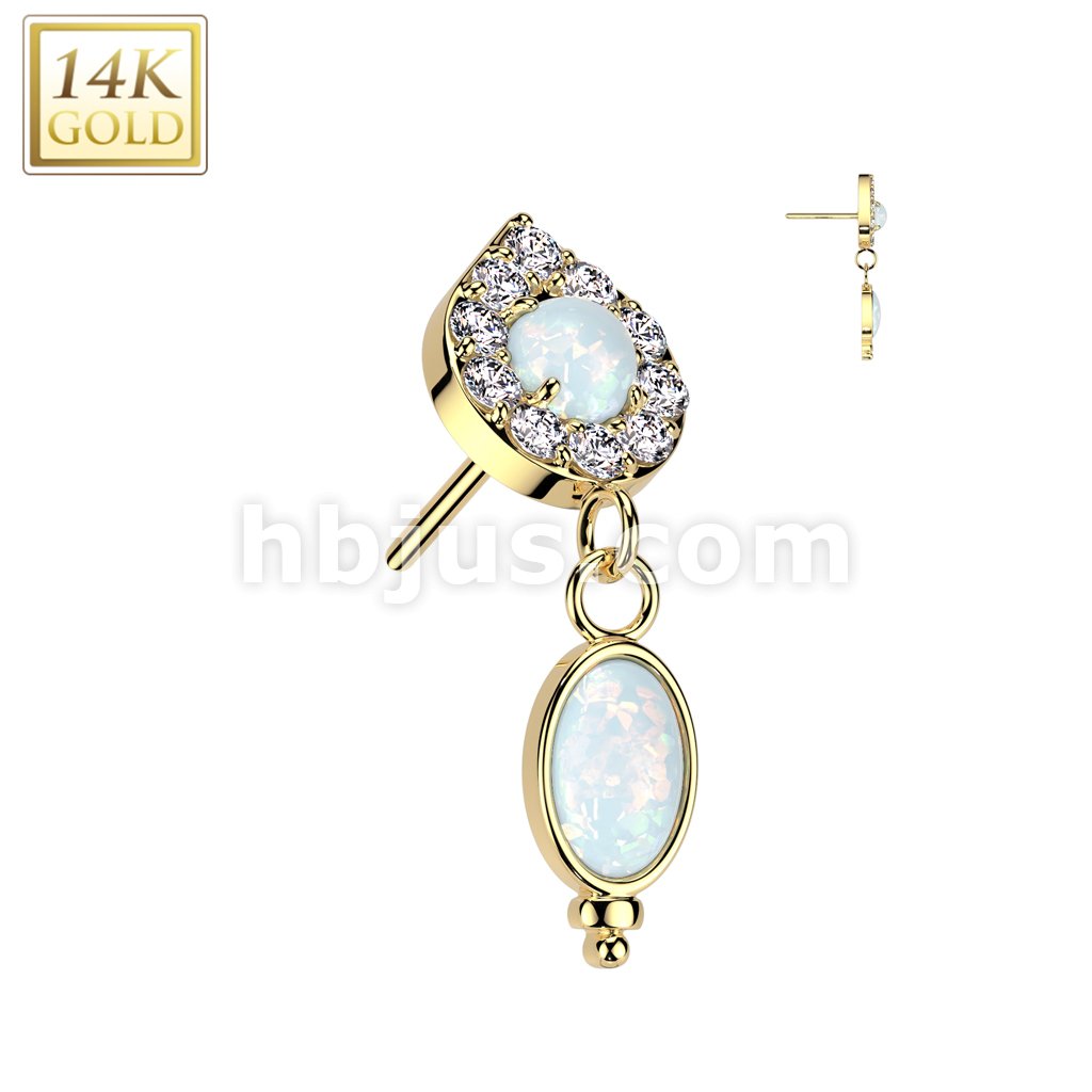 14K Gold Threadless Push In Teardrop Top With Opal Center and Opal Dangle