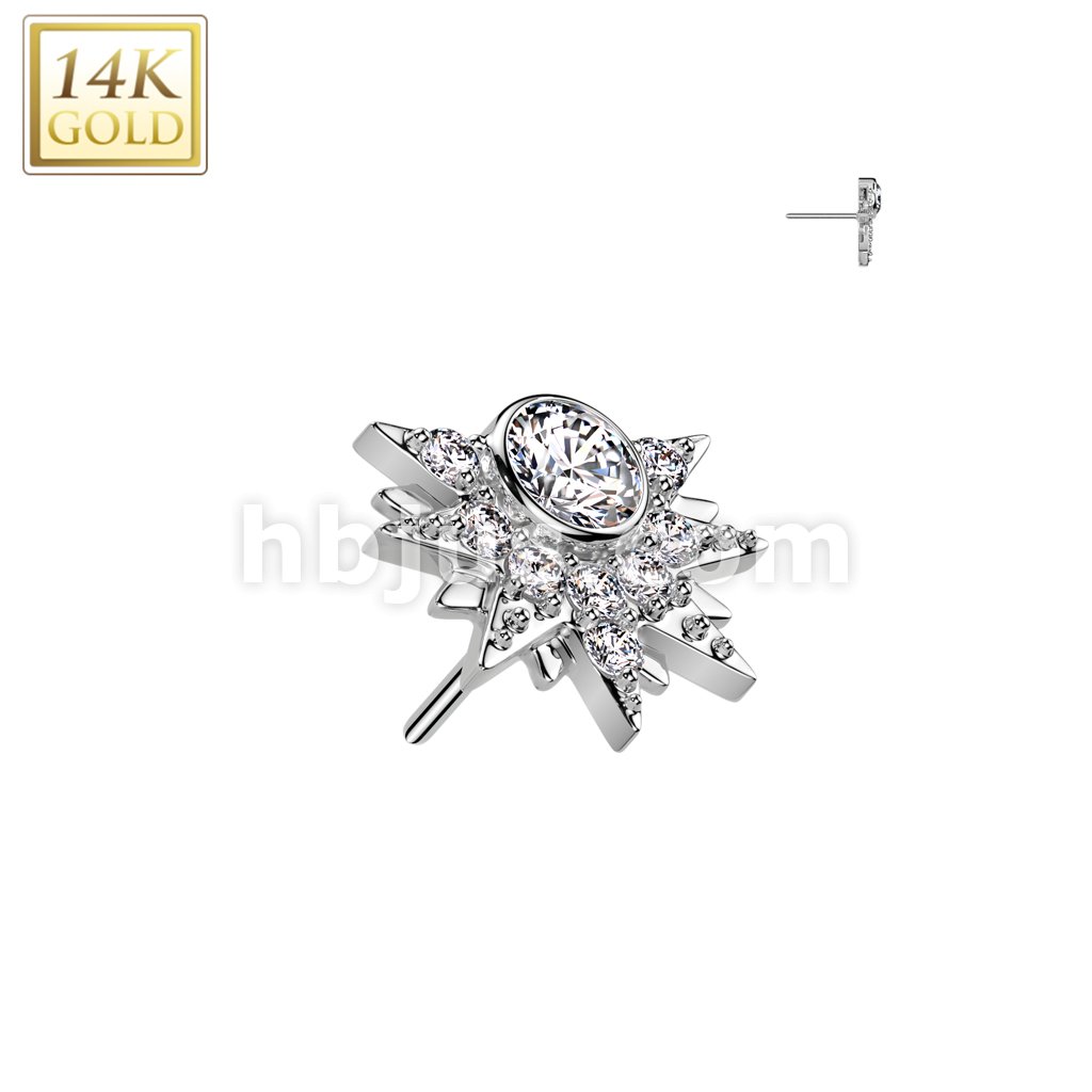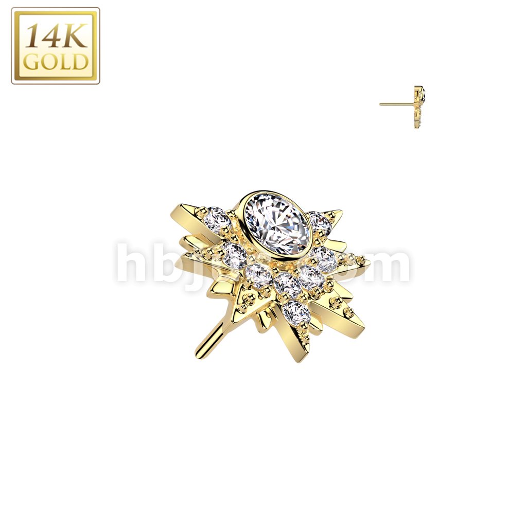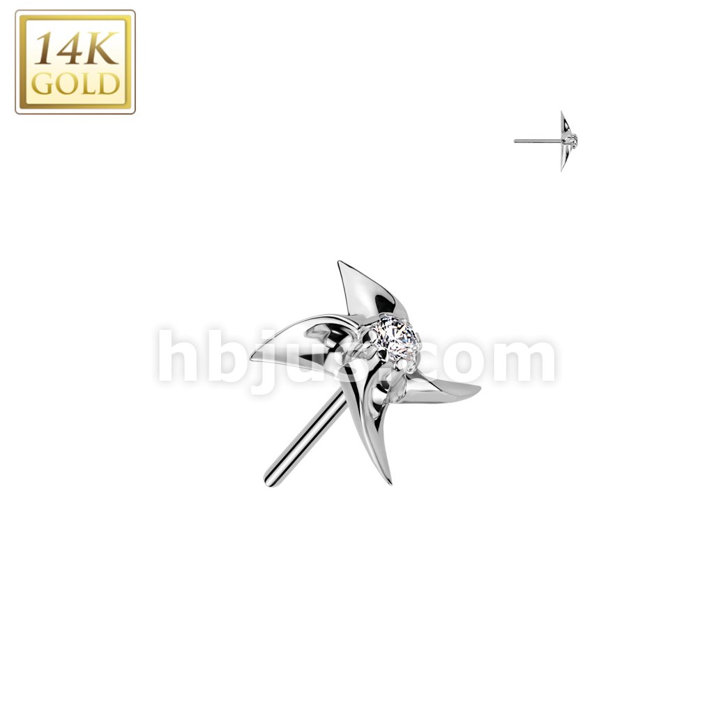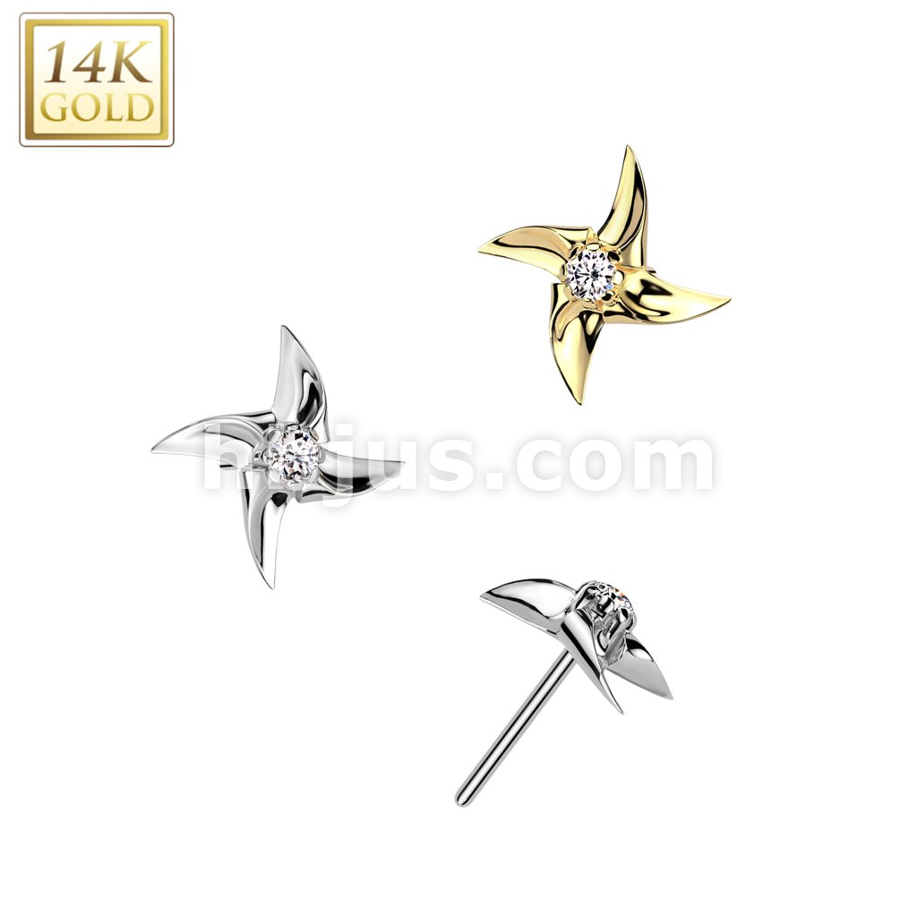 14K Gold Threadless Push In Pinwheel With CZ Center Top