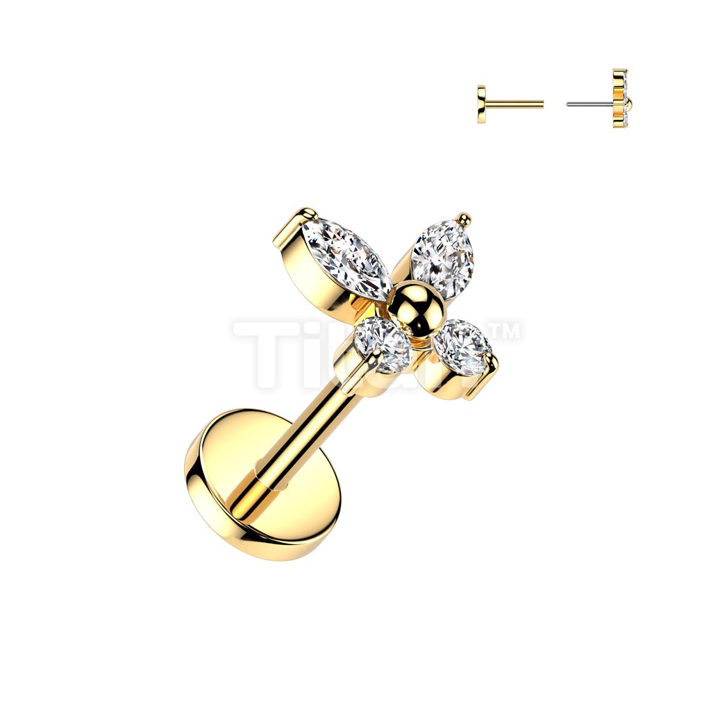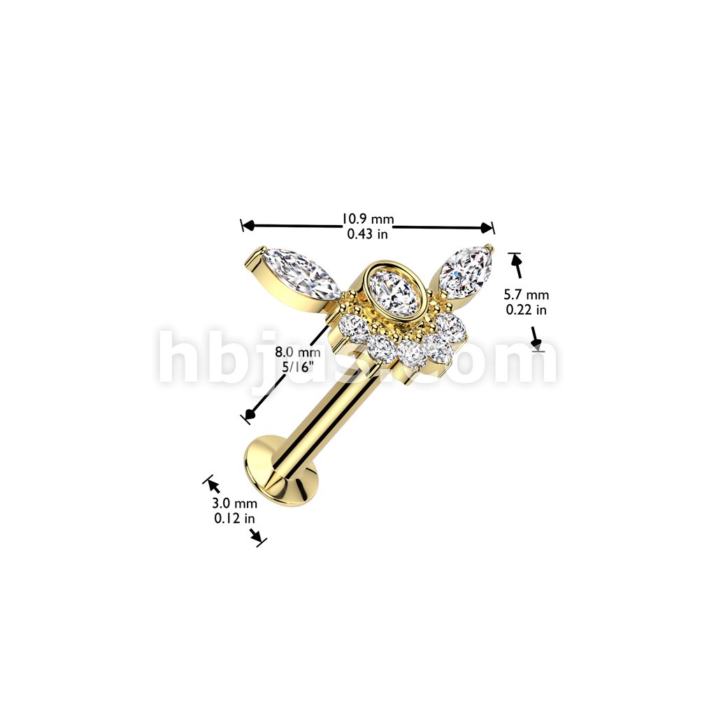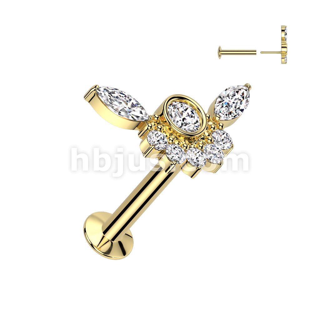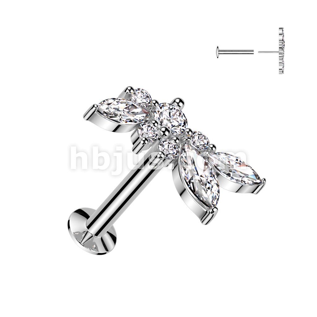 316L Surgical Steel Threadless Push In Flat Back Stud With Convex Back and Marquise CZ Wings Top