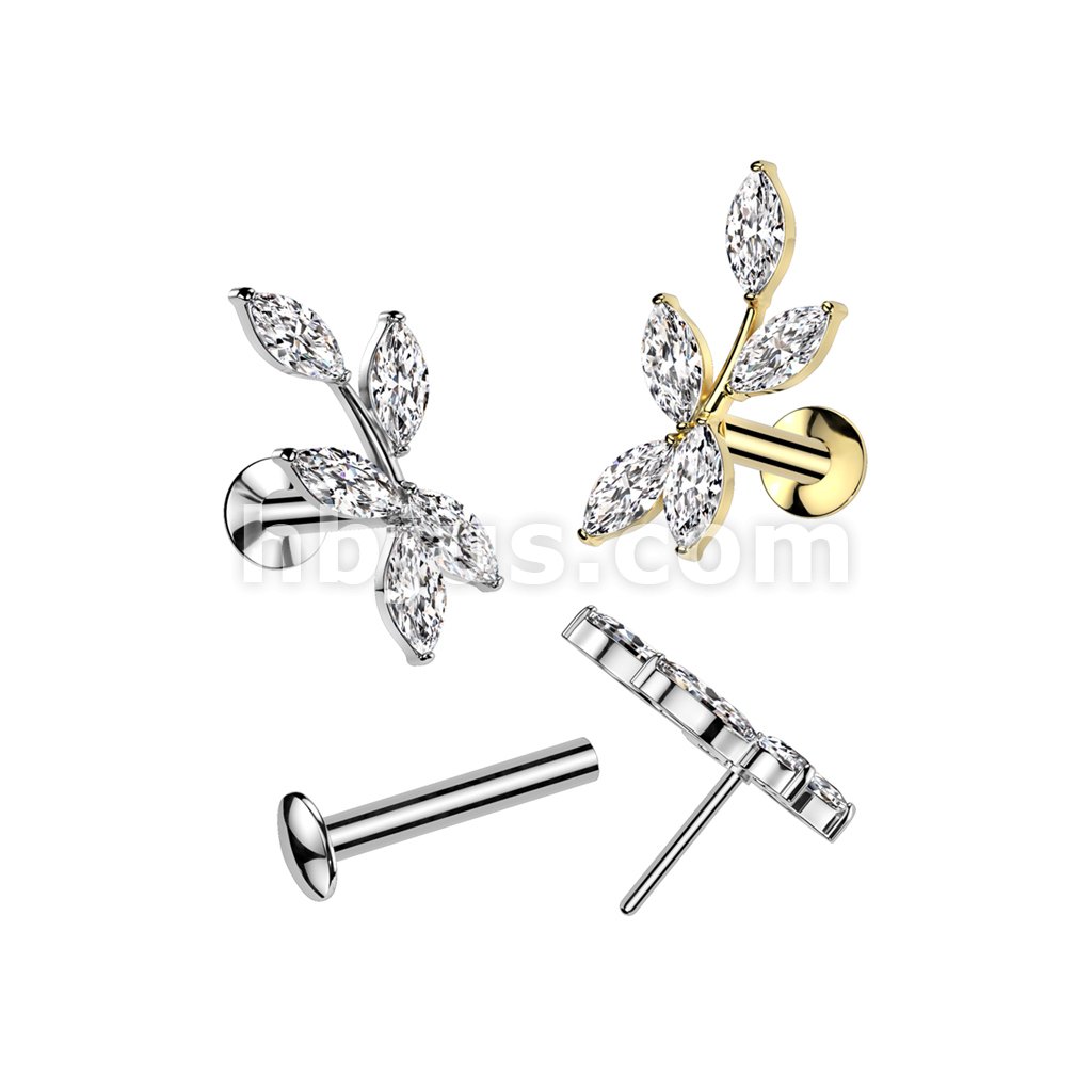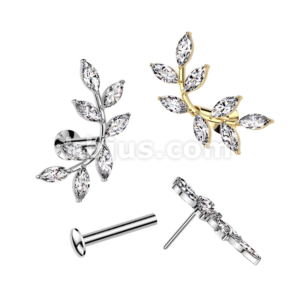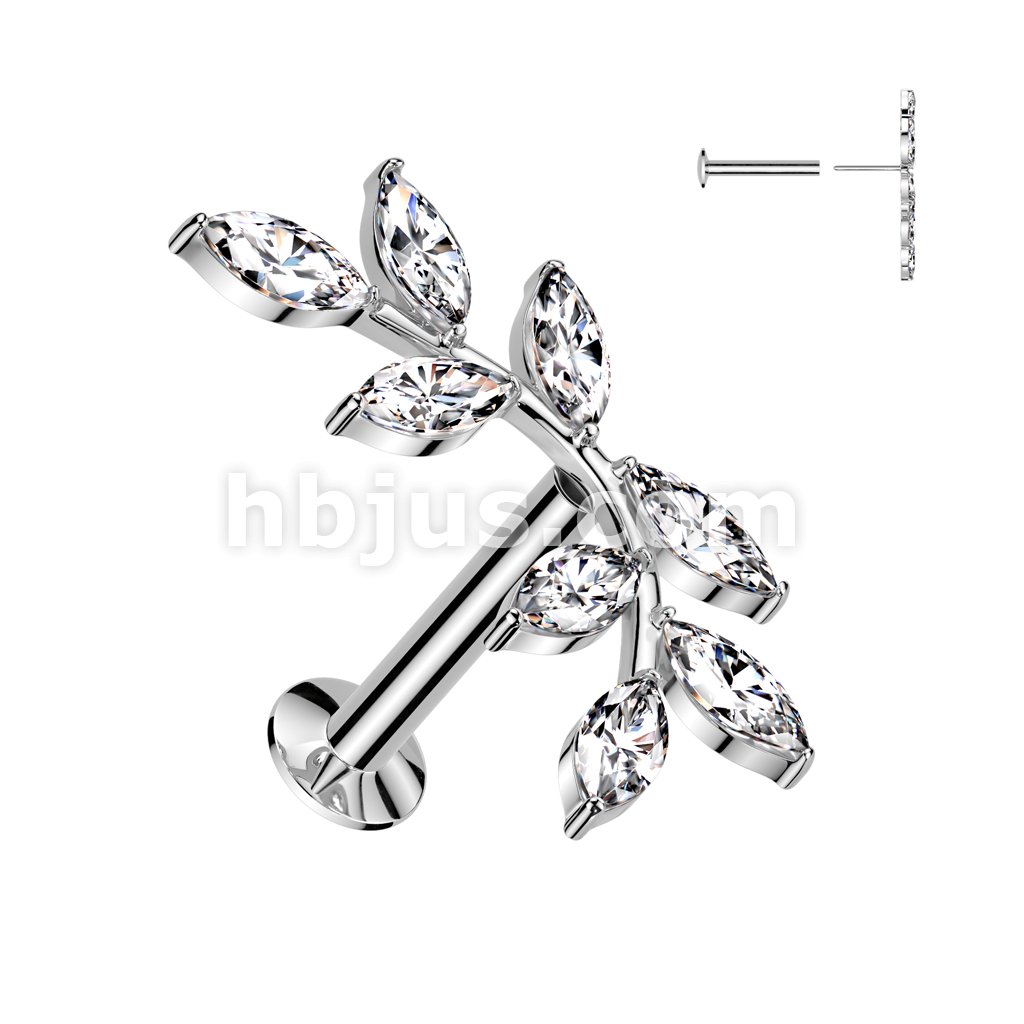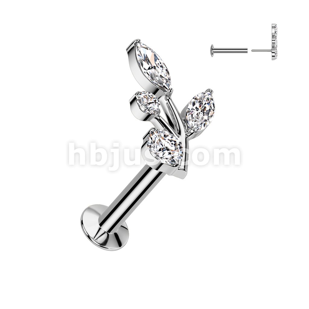 316L Surgical Steel Threadless Push In Flat Back Stud With Convex Back and 5 Marquise CZ Vine Top