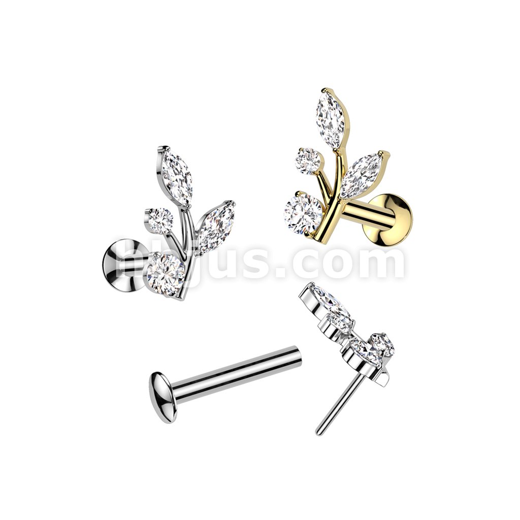 316L Surgical Steel Threadless Push In Flat Back Stud With Convex Back and Marquise and Round CZ Vine Top
