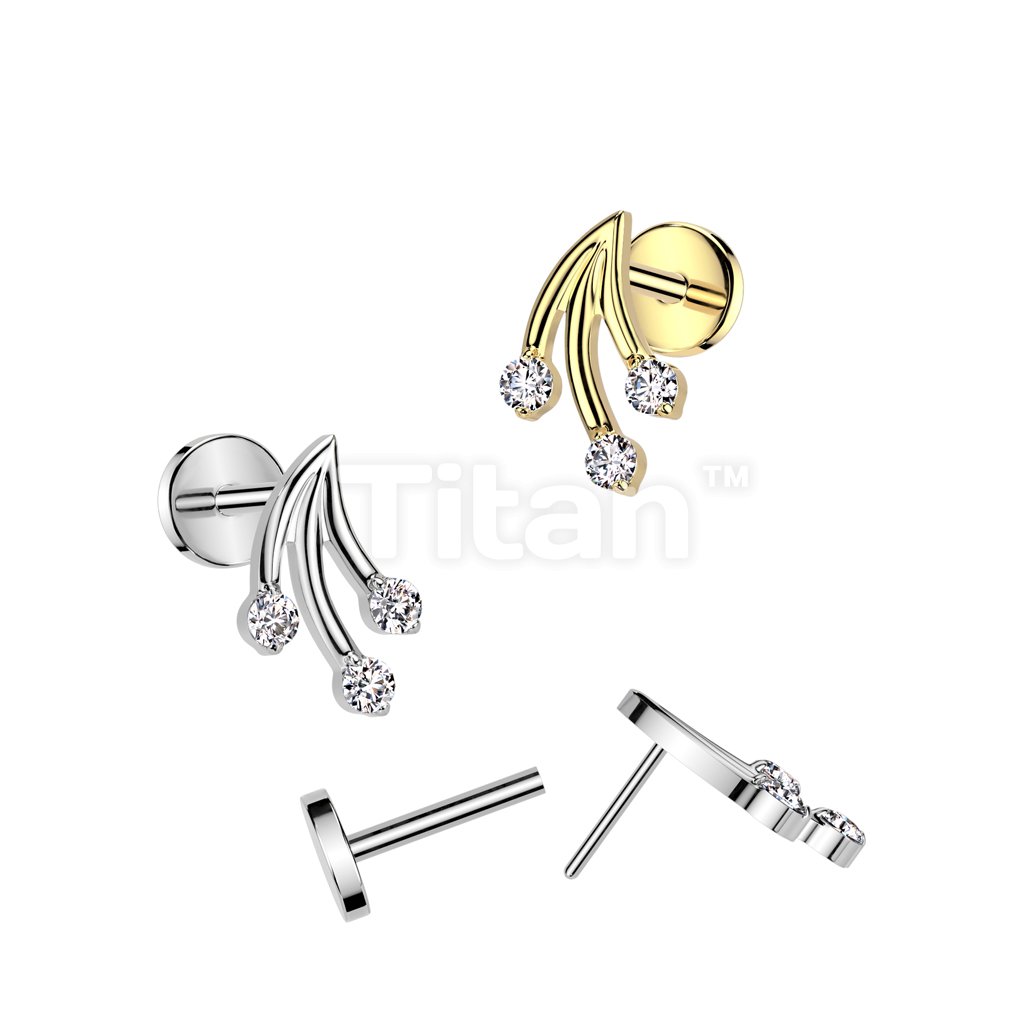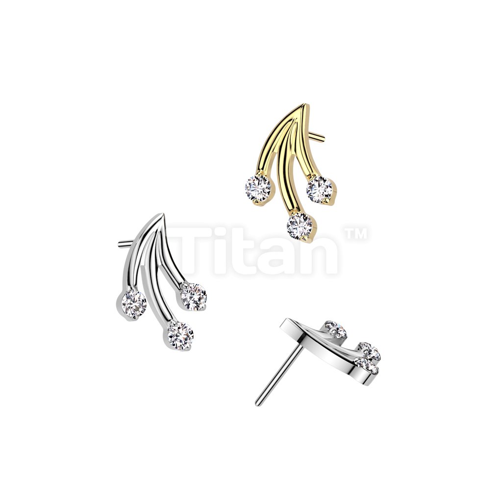 Implant Grade Titanium Threadless Push In 20ga Flat Back Earring Stud With Ball Center Triangle and 3 Marquise CZ Top