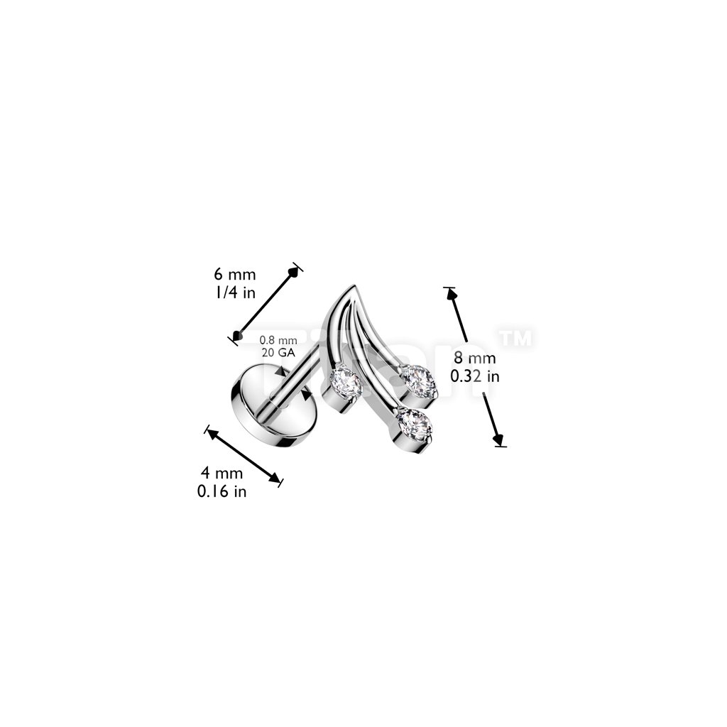 316L Surgical Steel Threadless Push In Flat Back Stud With Convex Back and Marquise CZ Vine and Round CZ Ends Top