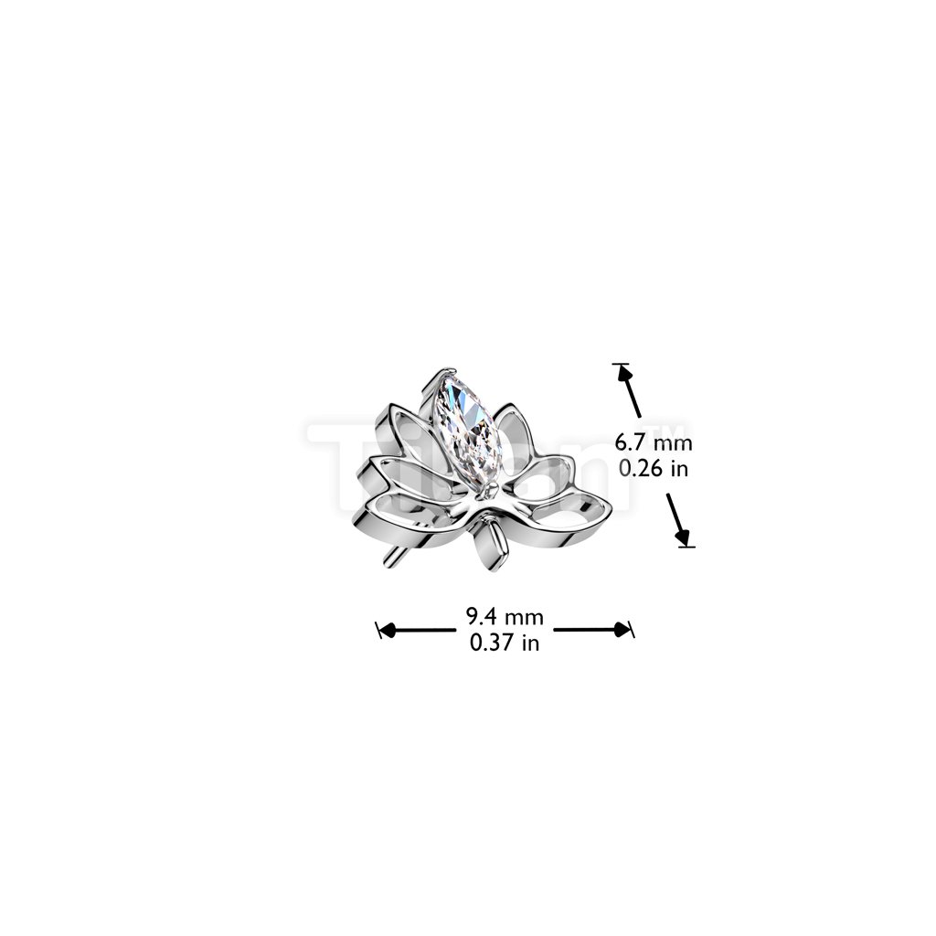 Implant Grade Titanium Threadless Push In Hollow Lotus Flower With Marquise CZ Top