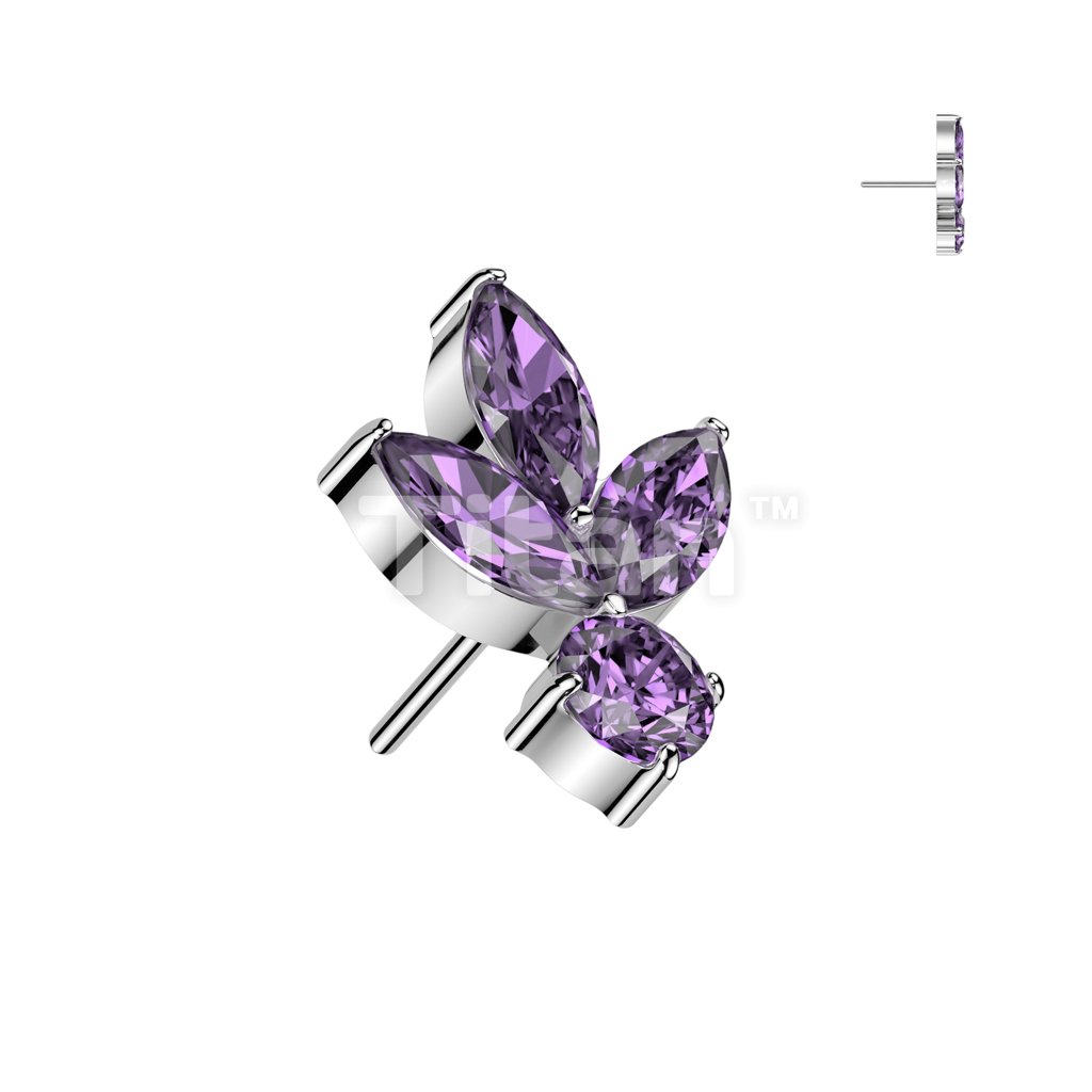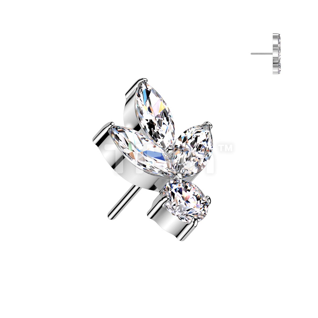 Implant Grade Titanium Threadless Push In 3 Marquise CZ Leaf With Round CZ Top