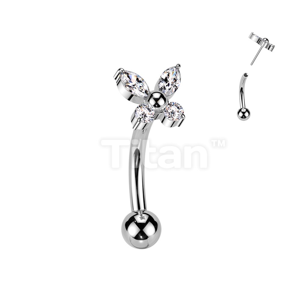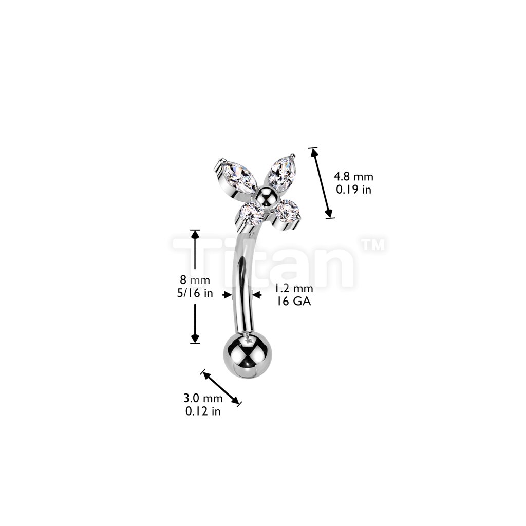 Implant Grade Titanium Threadless Push In Eyebrow Curved Barbell With CZ Butterfly Top