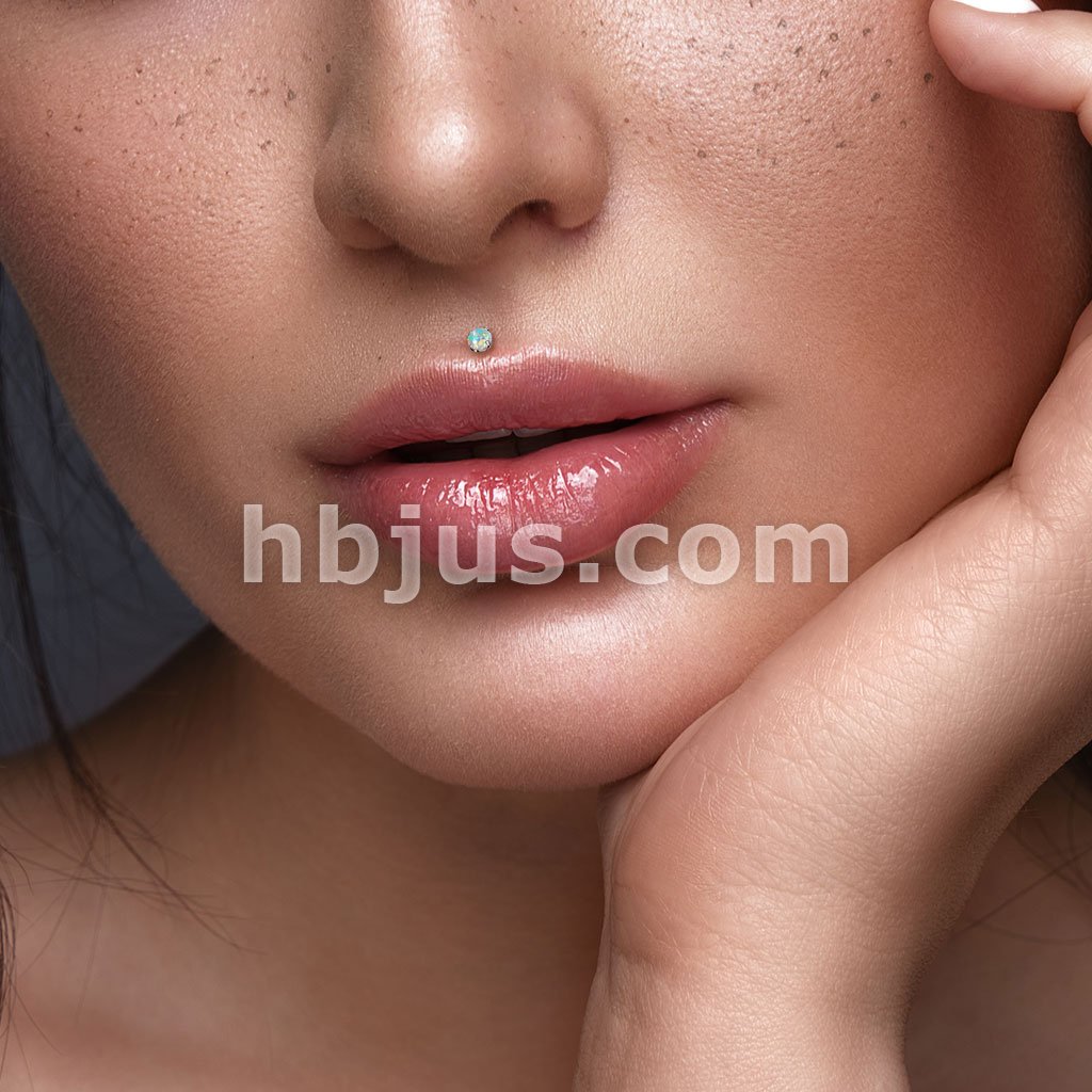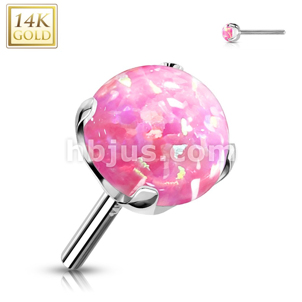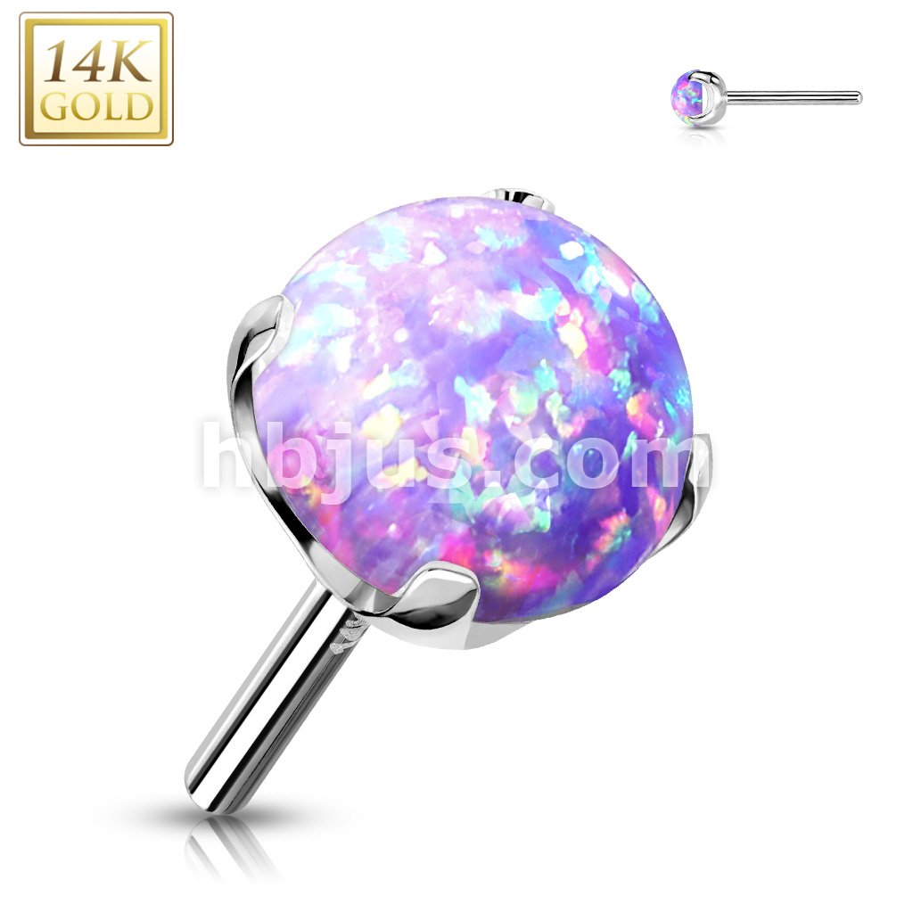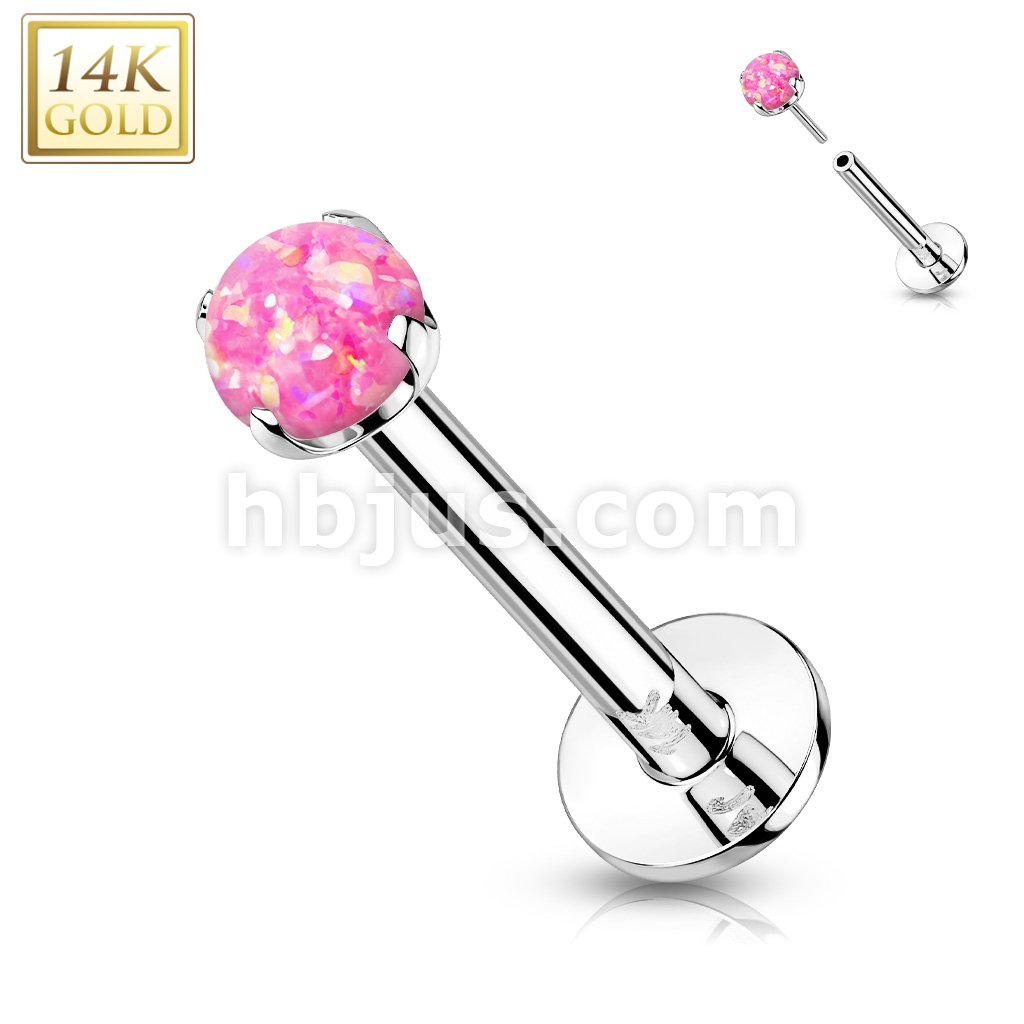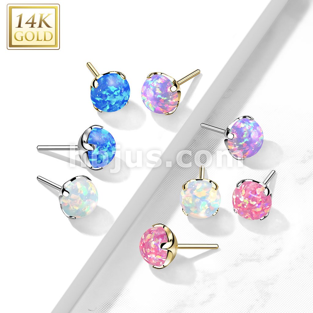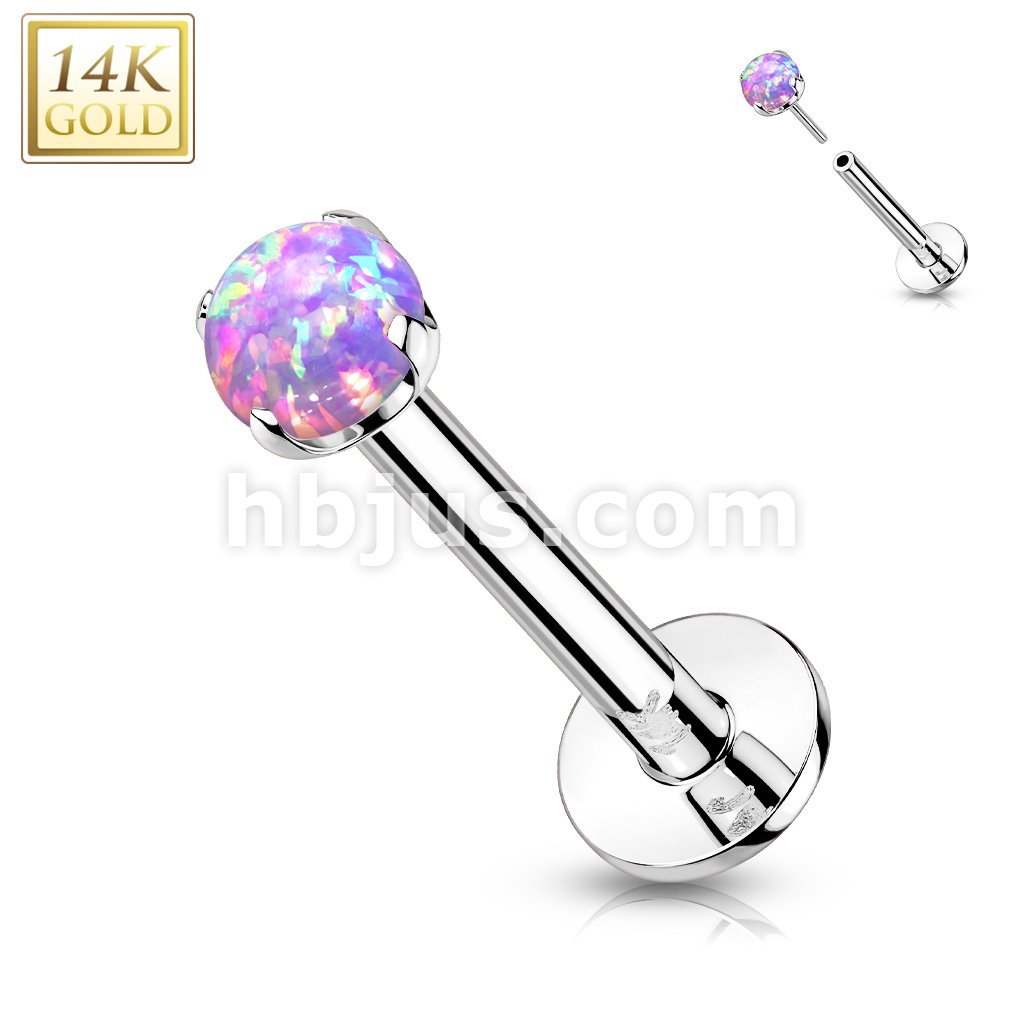 14K Gold Threadless Push-in Labret, Flat Back Studs With Prong Set Opal Top for Cartilage, Monroe and More