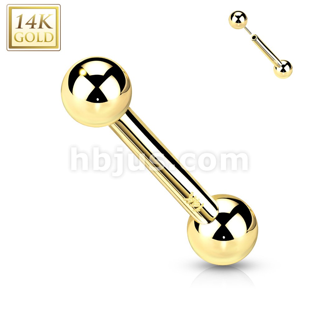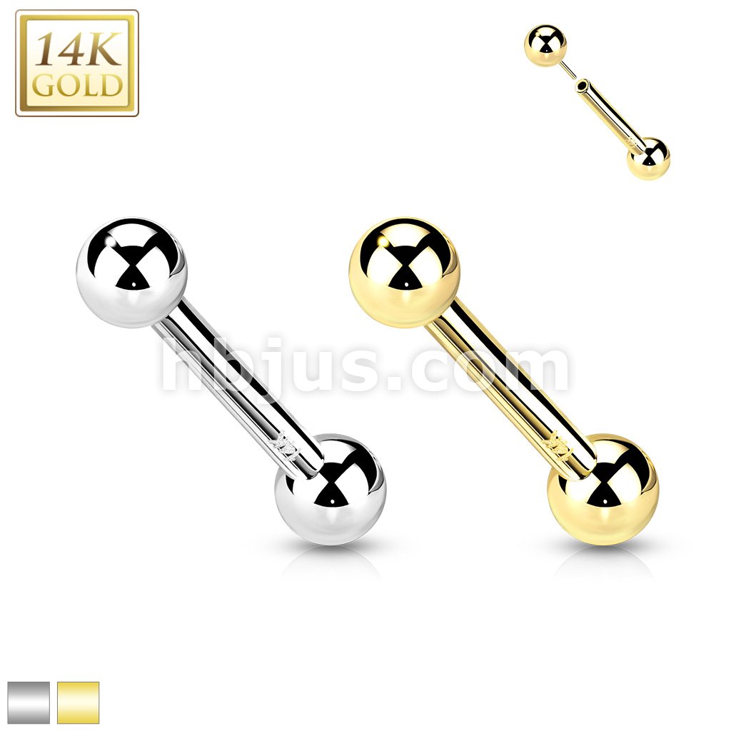 14K Gold Threadless Push-In Barbells For Cartilage, Tongue, Nipple and More