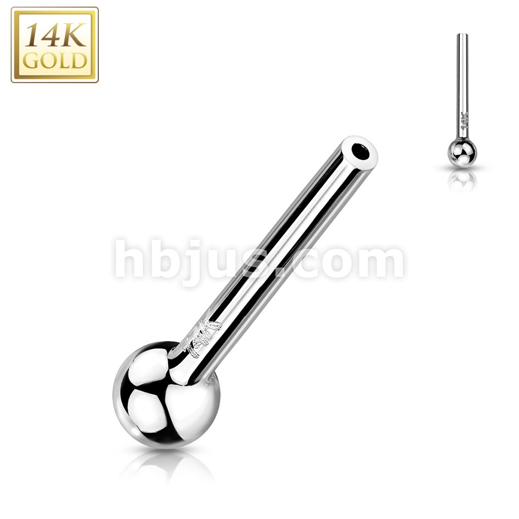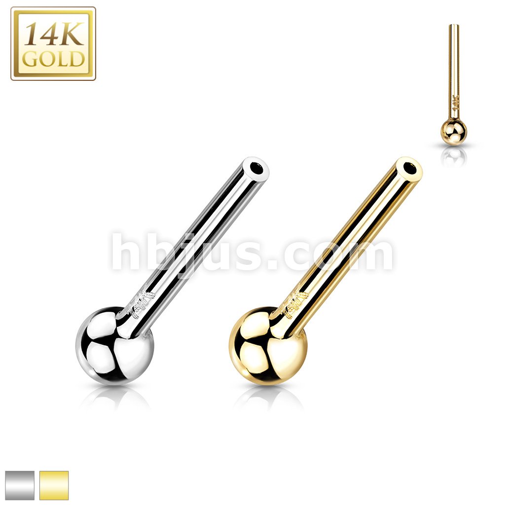14K Gold Threadless Push In Barbell Pins With One Fixed Ball