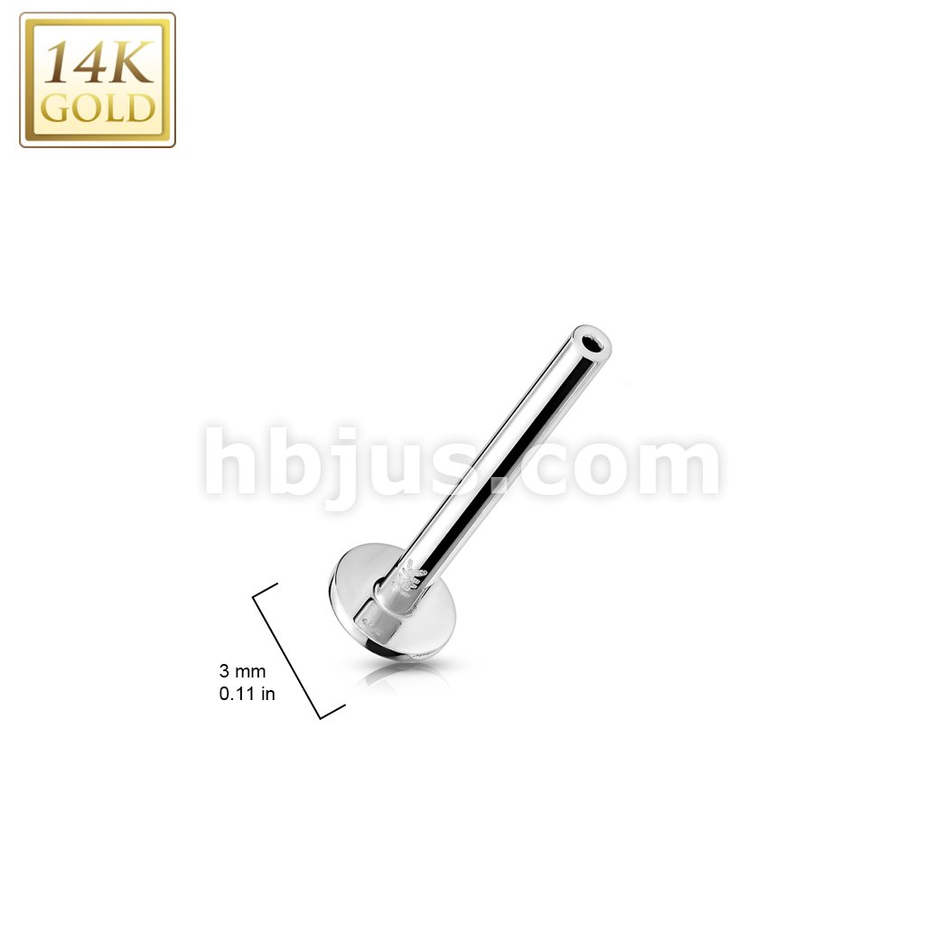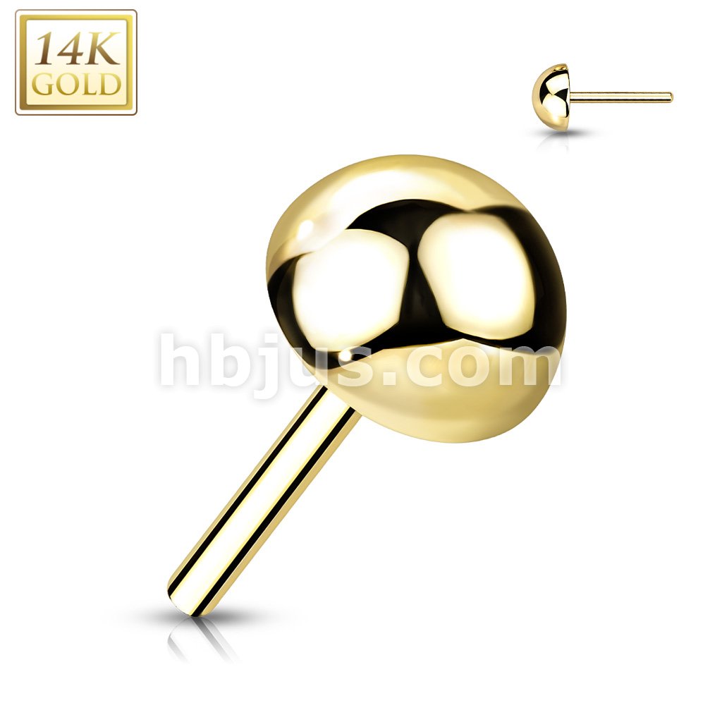 14K Gold Threadless Push In Labret, Flat Back Stud Pins