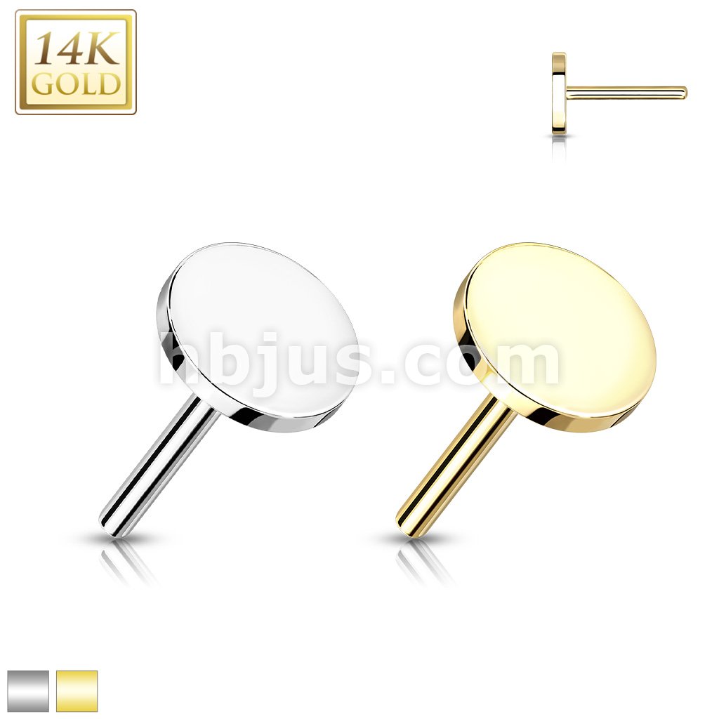 14K Gold Threadless Push In Flat Round Top