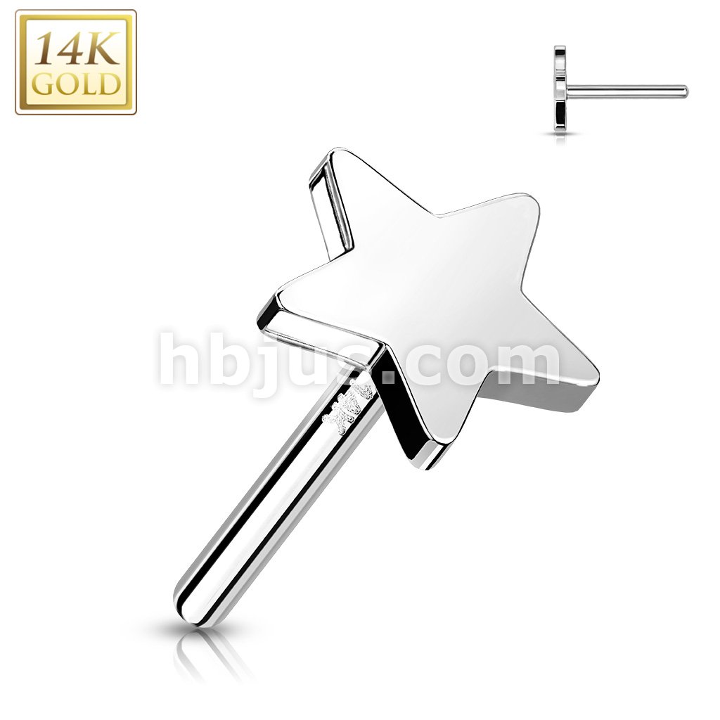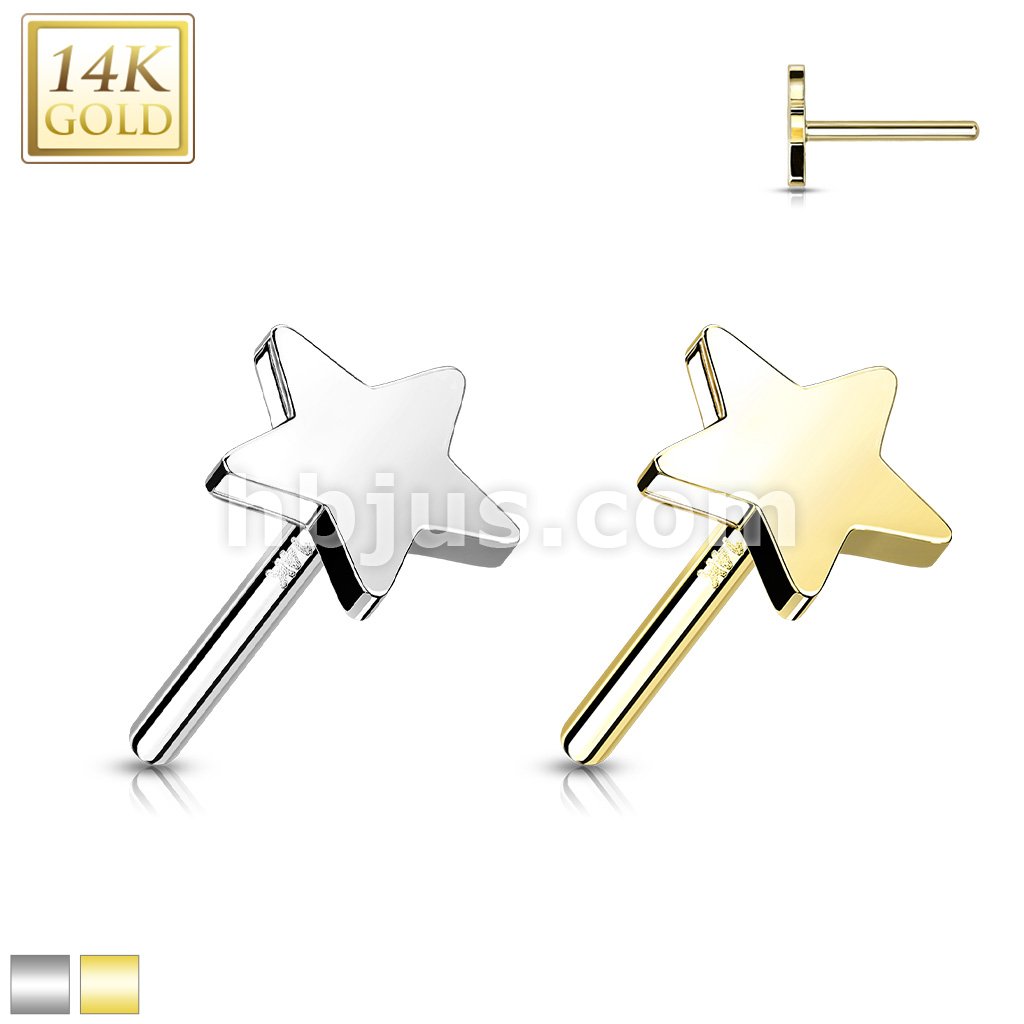 14K Gold Threadless Push In Flat Star Tops