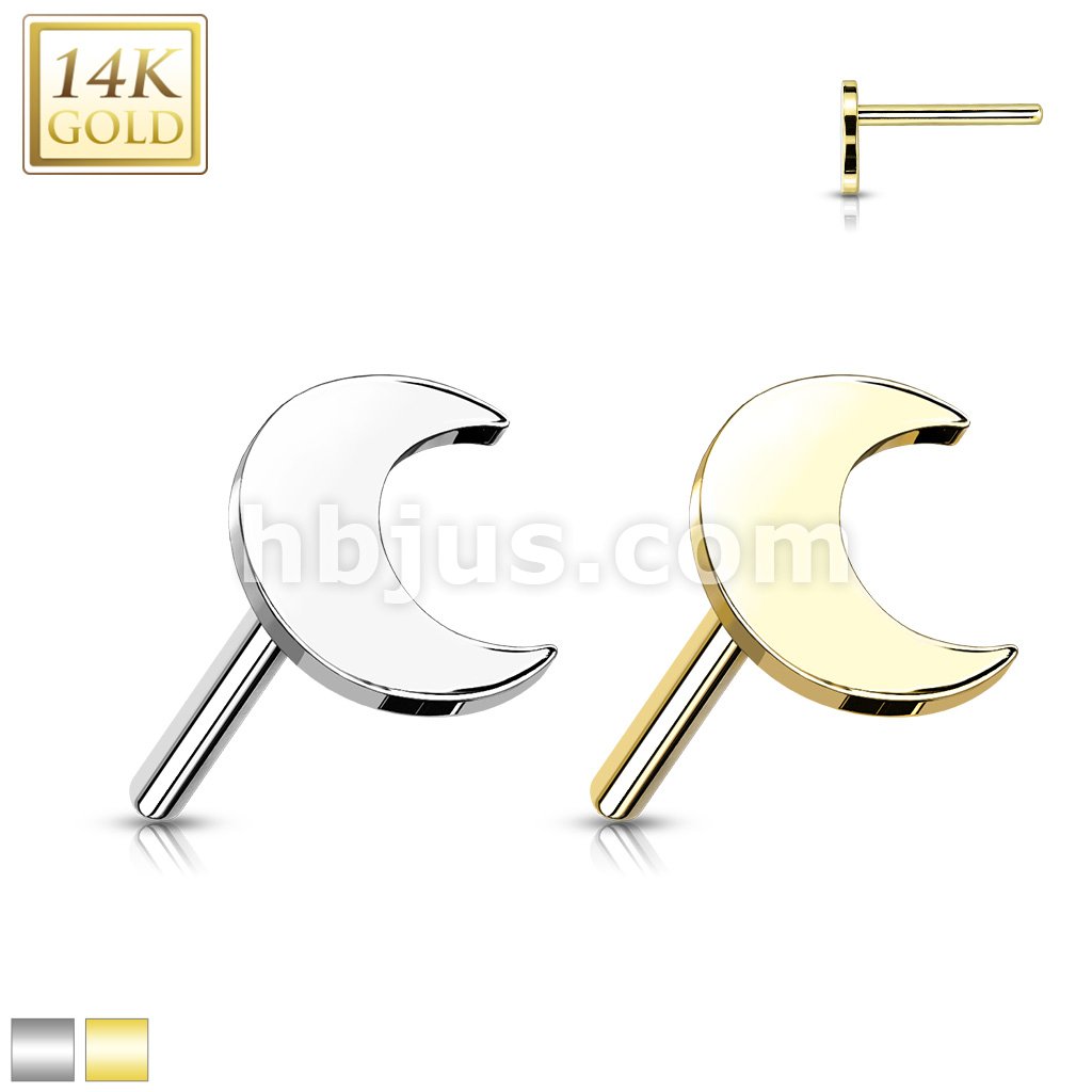 14K Gold Threadless Push In Crescent Moon Tops