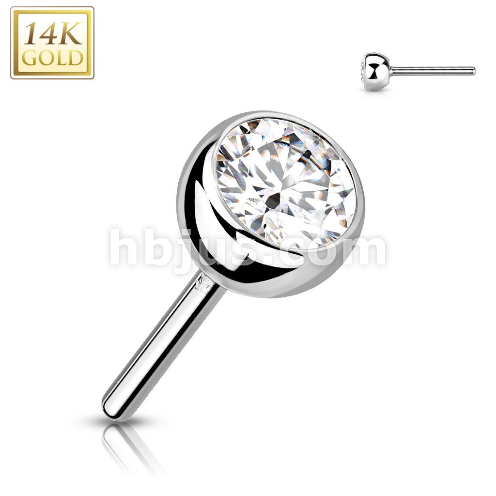 14K Gold CZ Bezel Set Threadless Push In Top