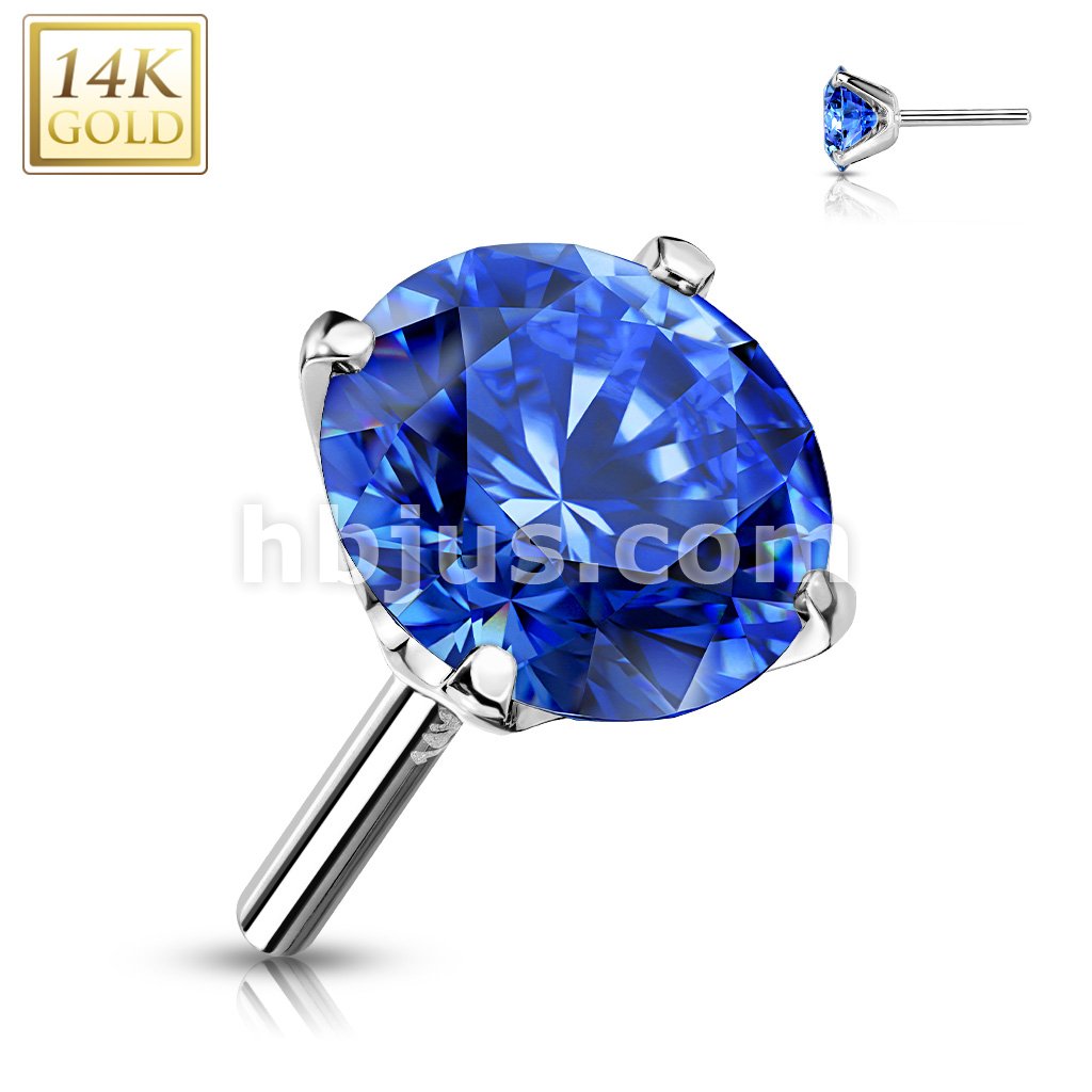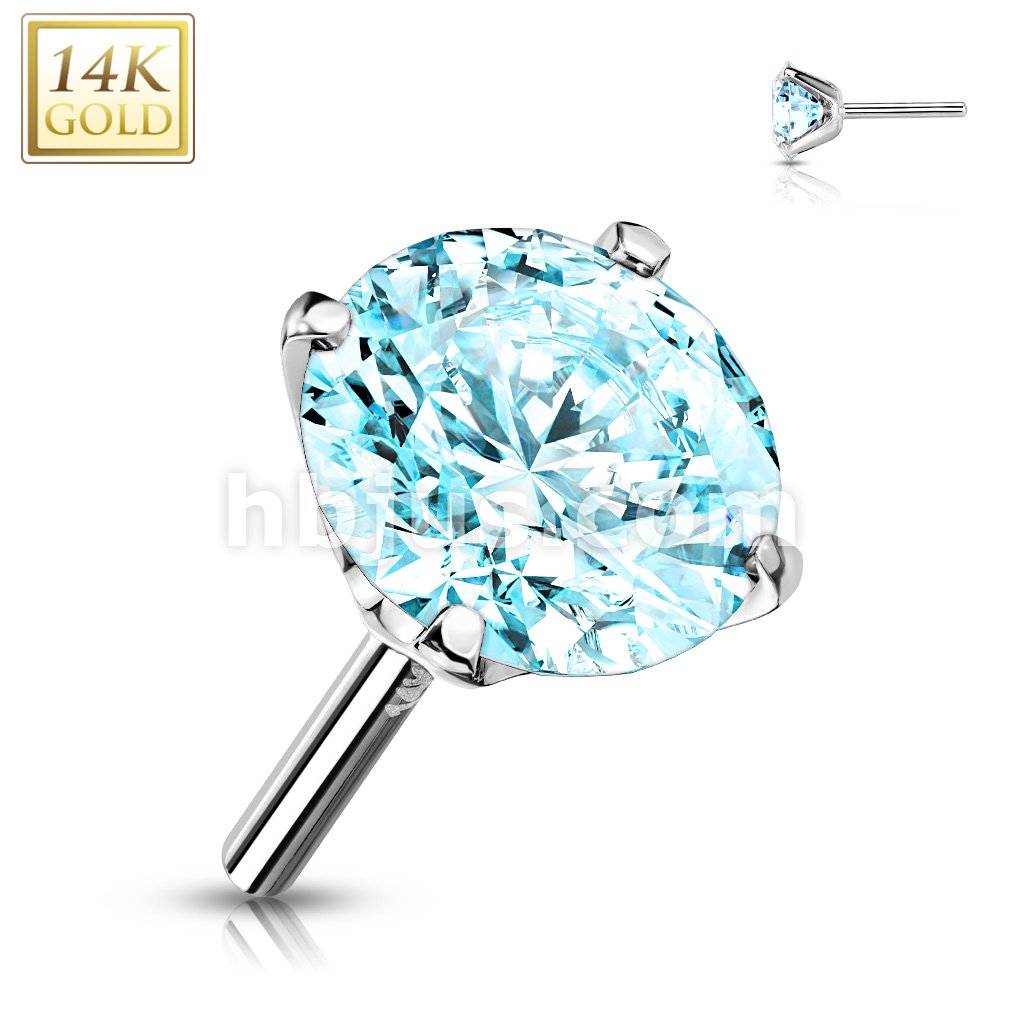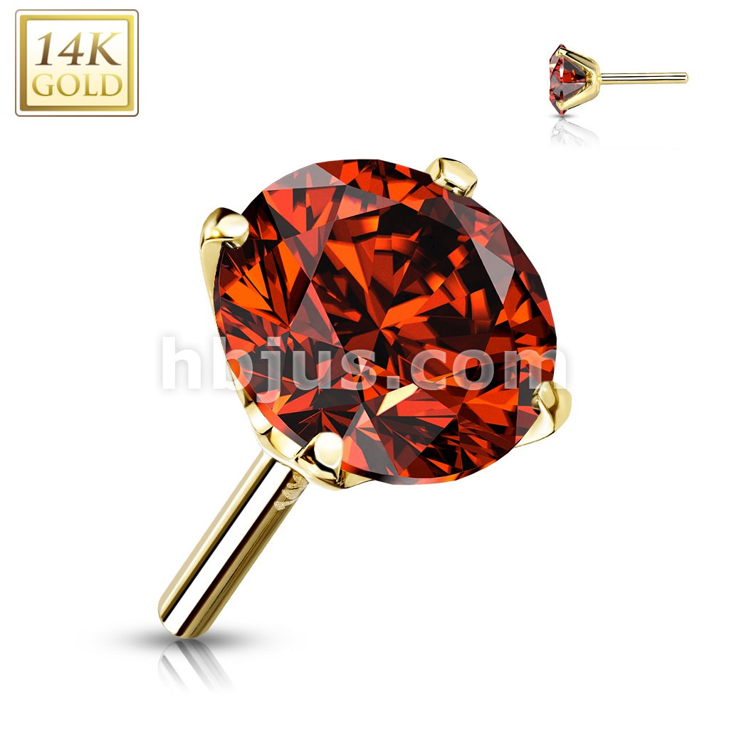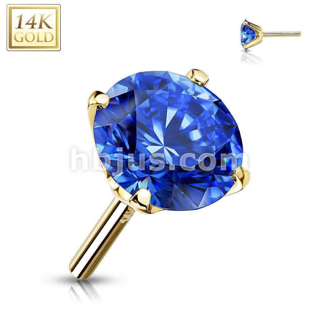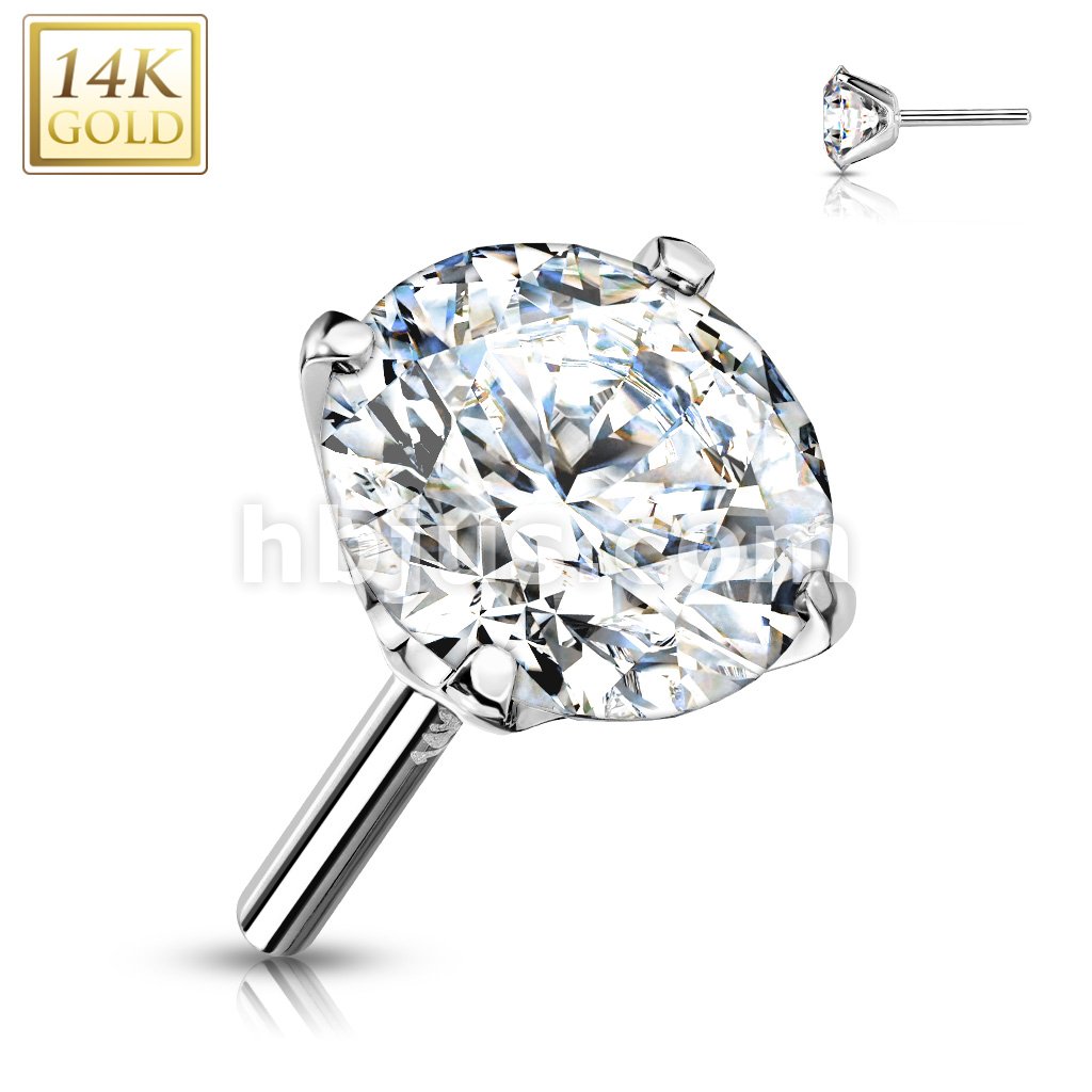 14K Gold CZ Prong Set Threadless Push In Top