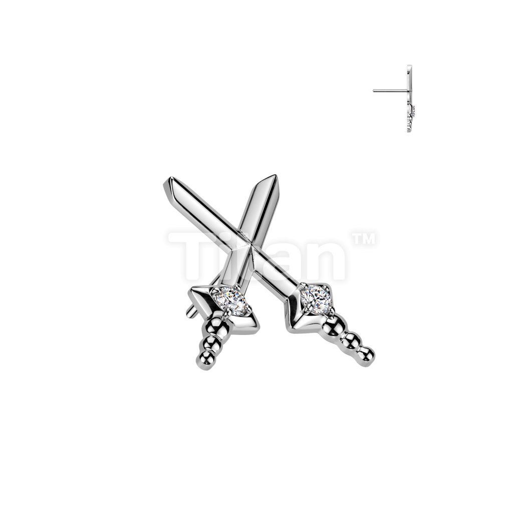 Implant Grade Titanium Threadless Push In Cross Dagger With CZ Top