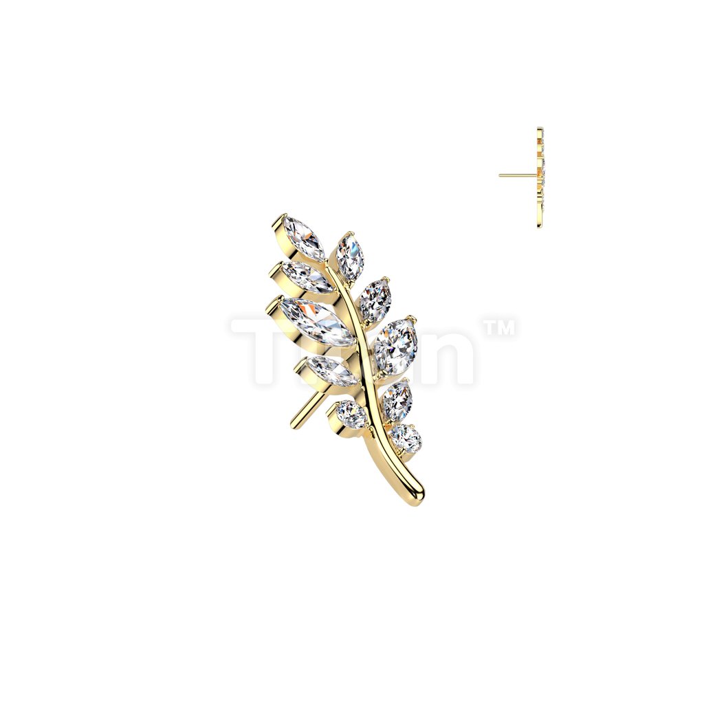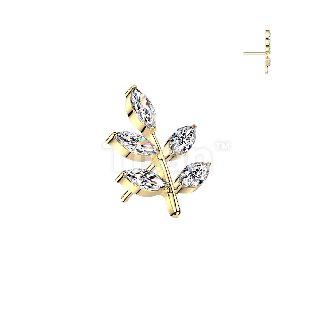 Implant Grade Titanium Threadless Push In 5 Marquise CZ Leaf Top