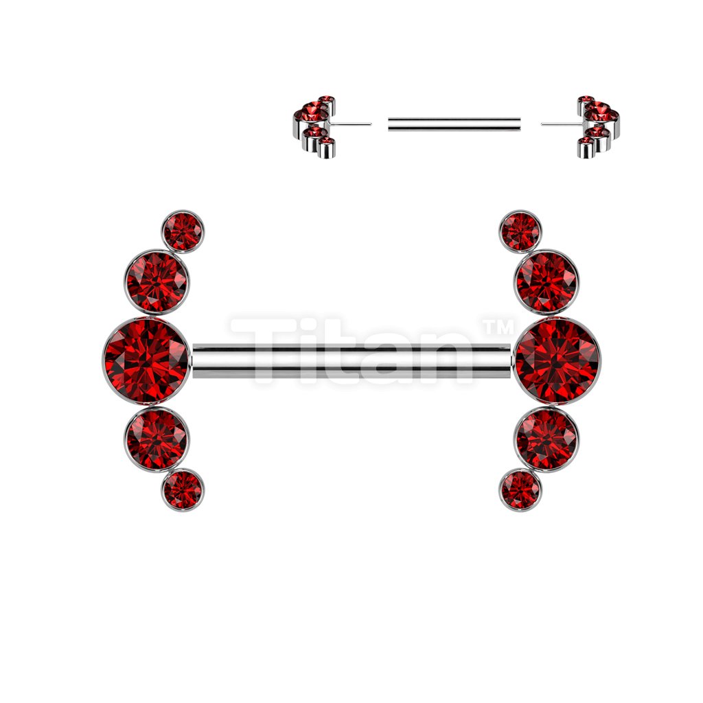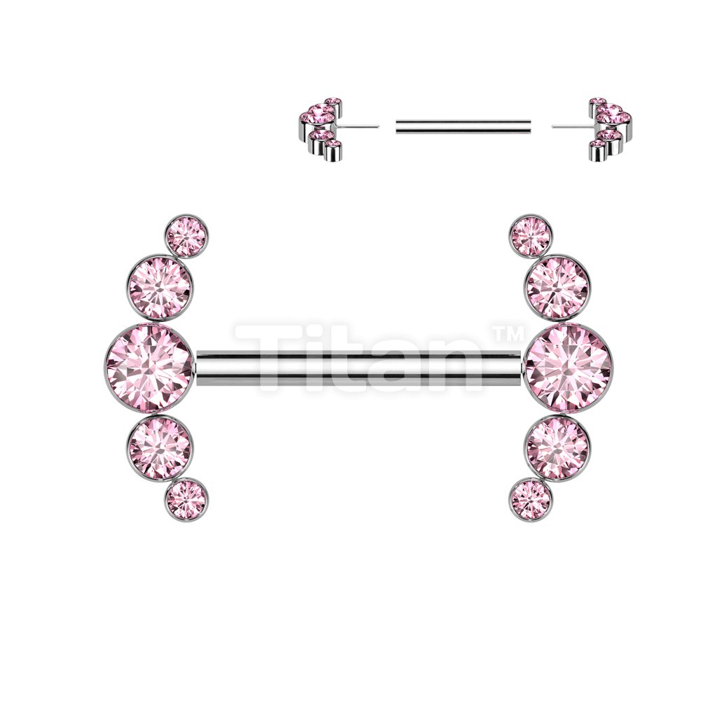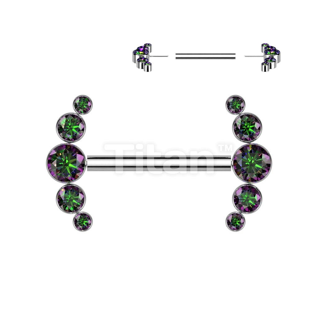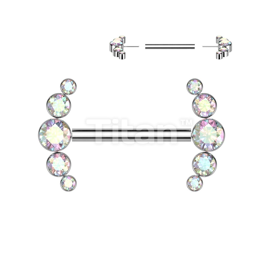 Implant Grade Titanium Threadless Push In Nipple Barbell With 5 Bezel Set CZ Ends