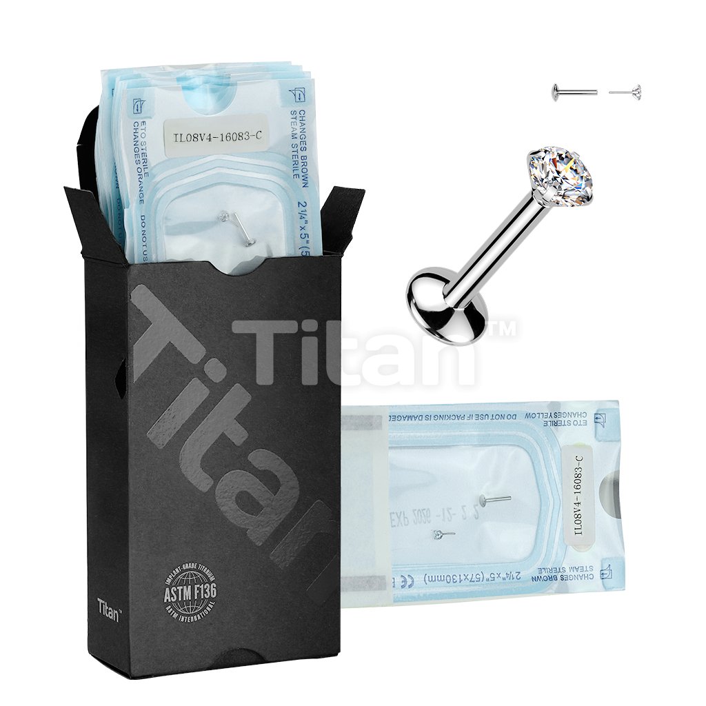 20pc Pack of Implant Grade Titanium Pre-Sterilized Threadless Push In Convex Labret With Bezel Set CZ Ball Top