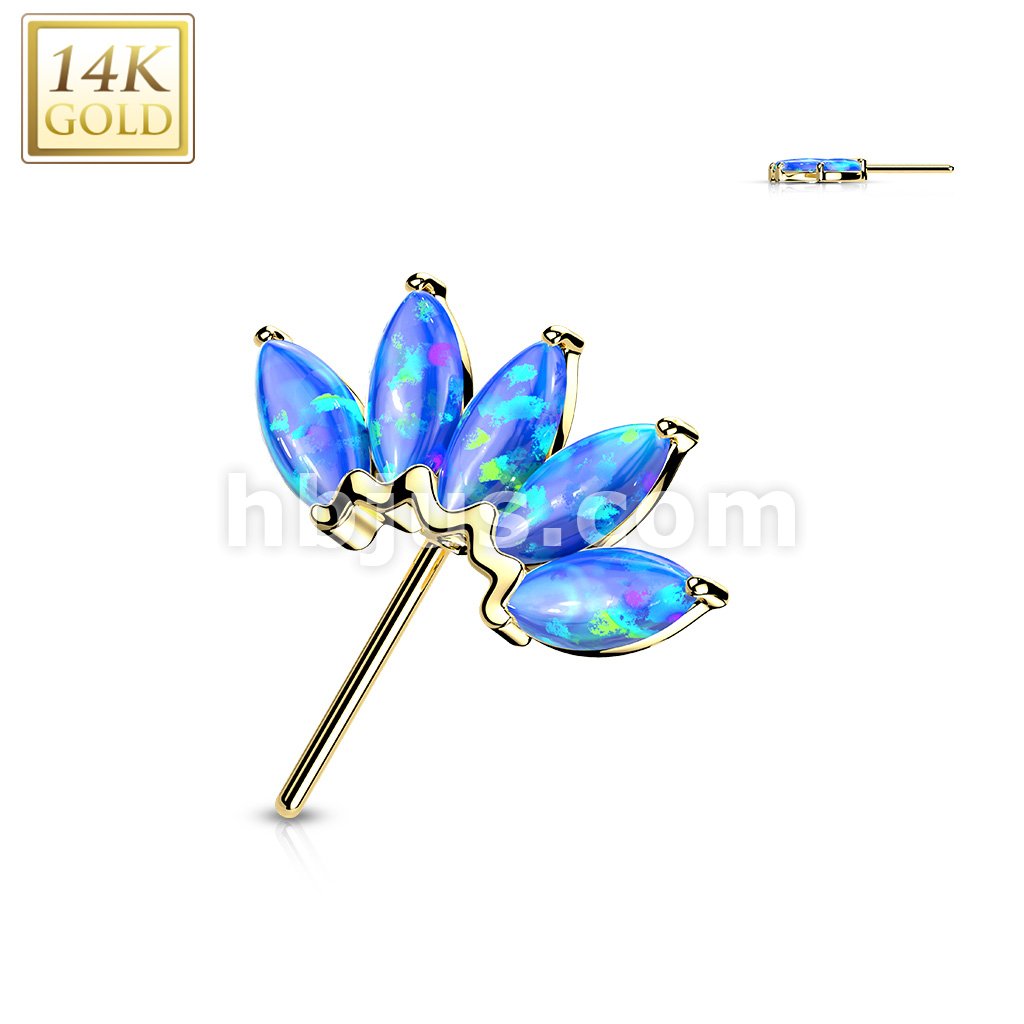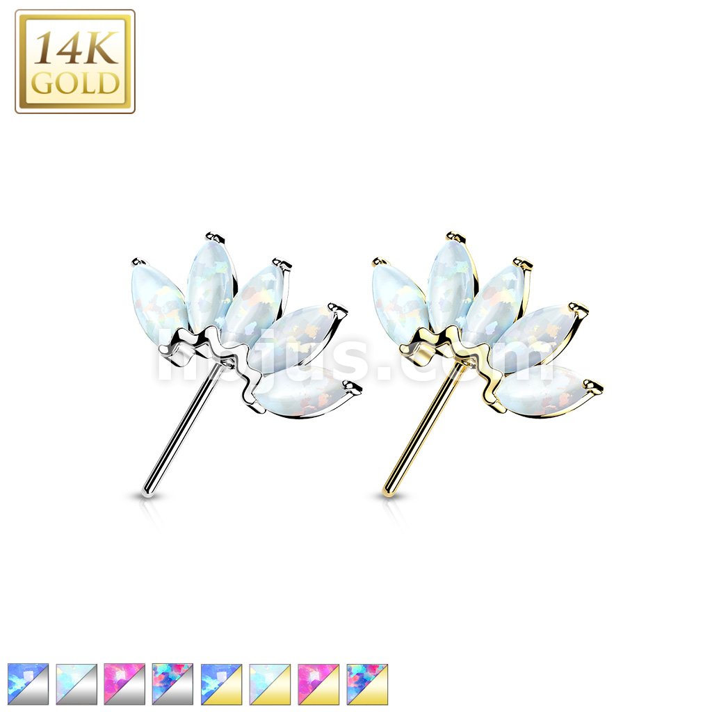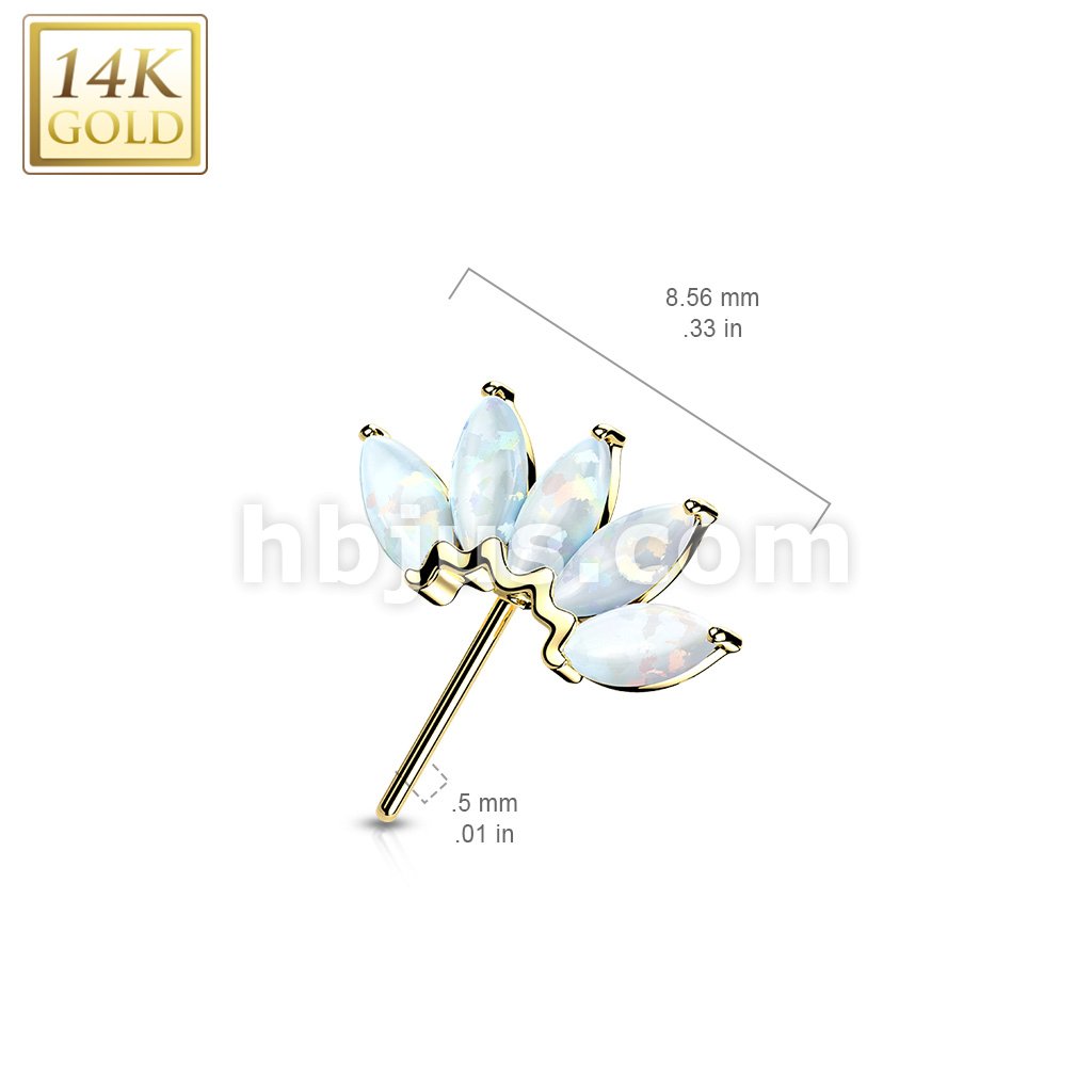 14K Gold Threadless Push In Front Facing 5 Marquise Opal Fan Set Curved Tops