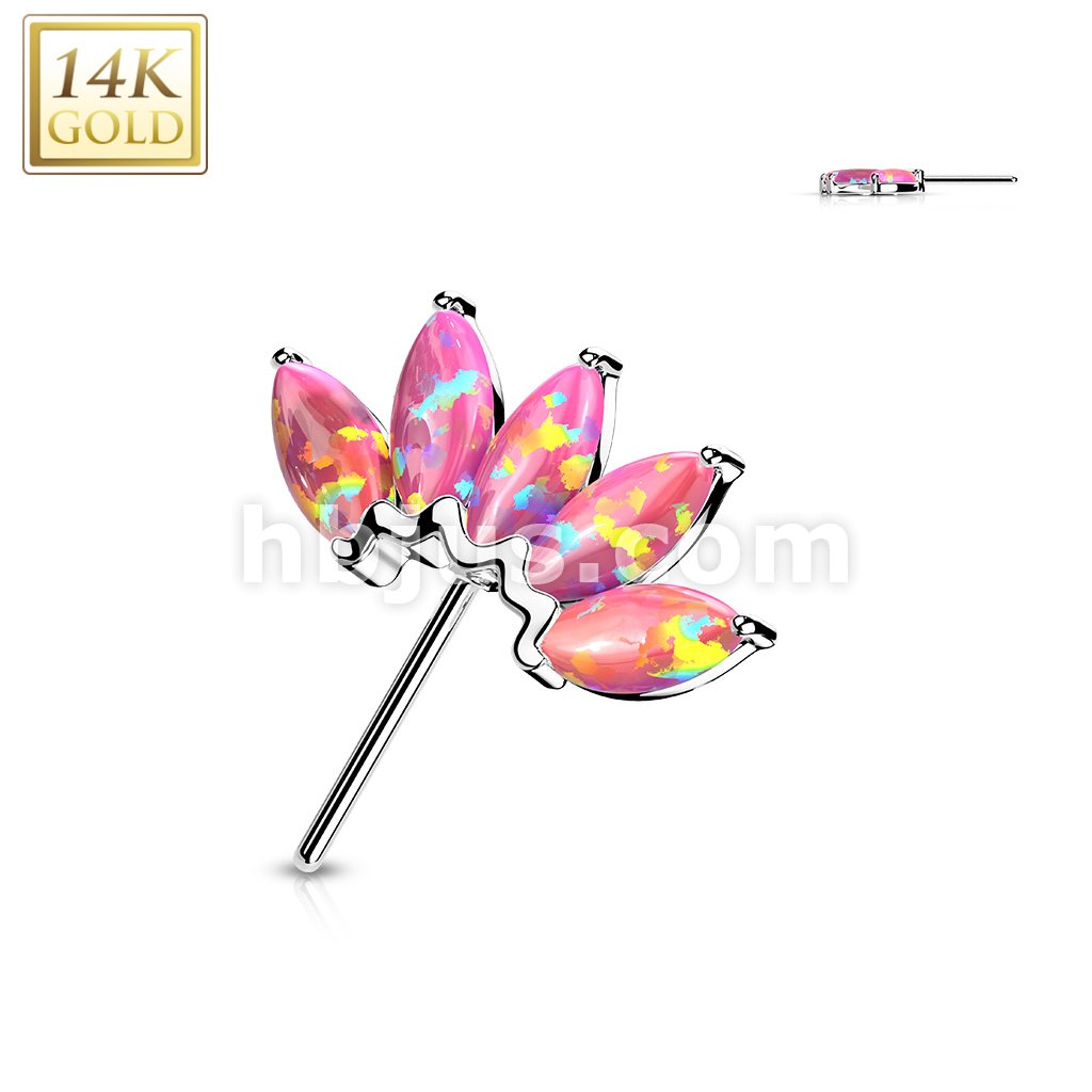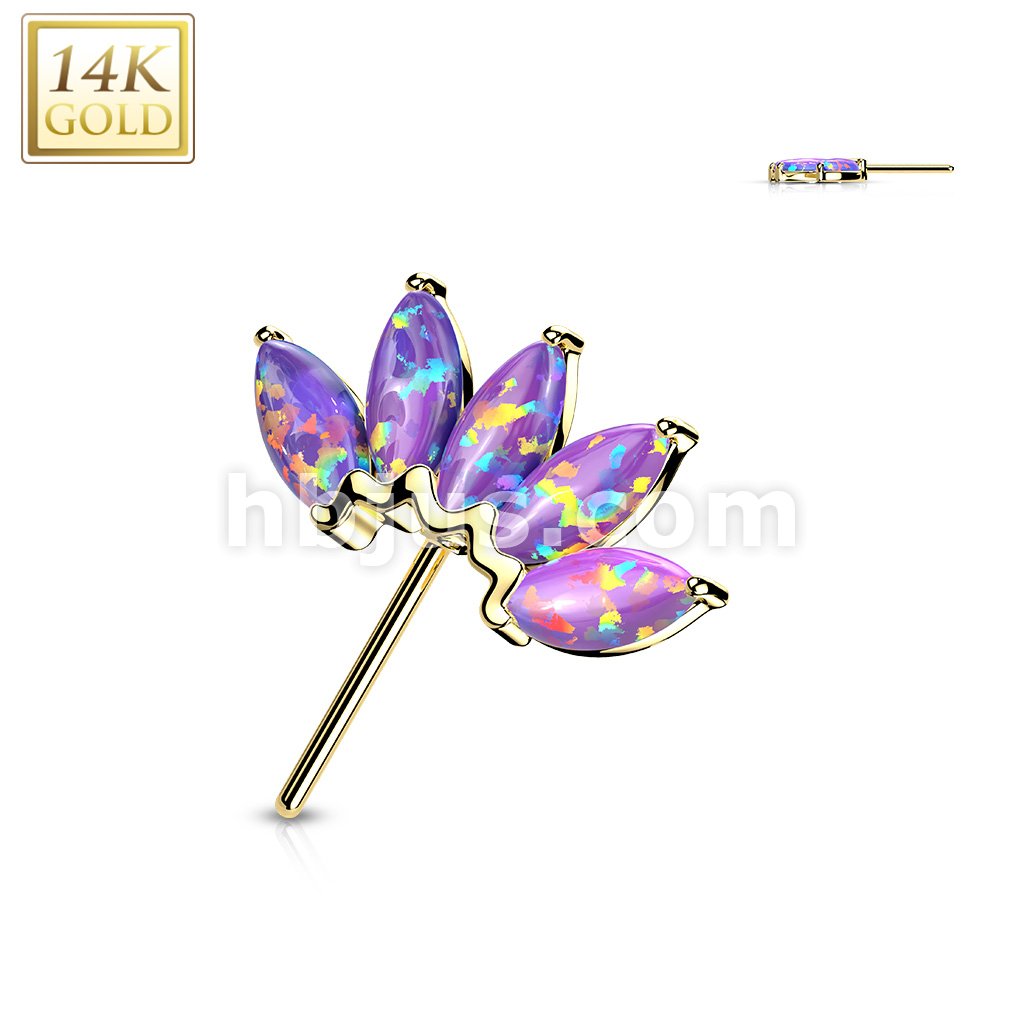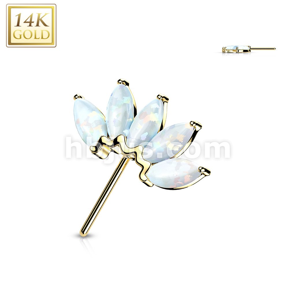 14K Gold Threadless Push In Front Facing 5 Marquise Opal Fan Set Curved Tops