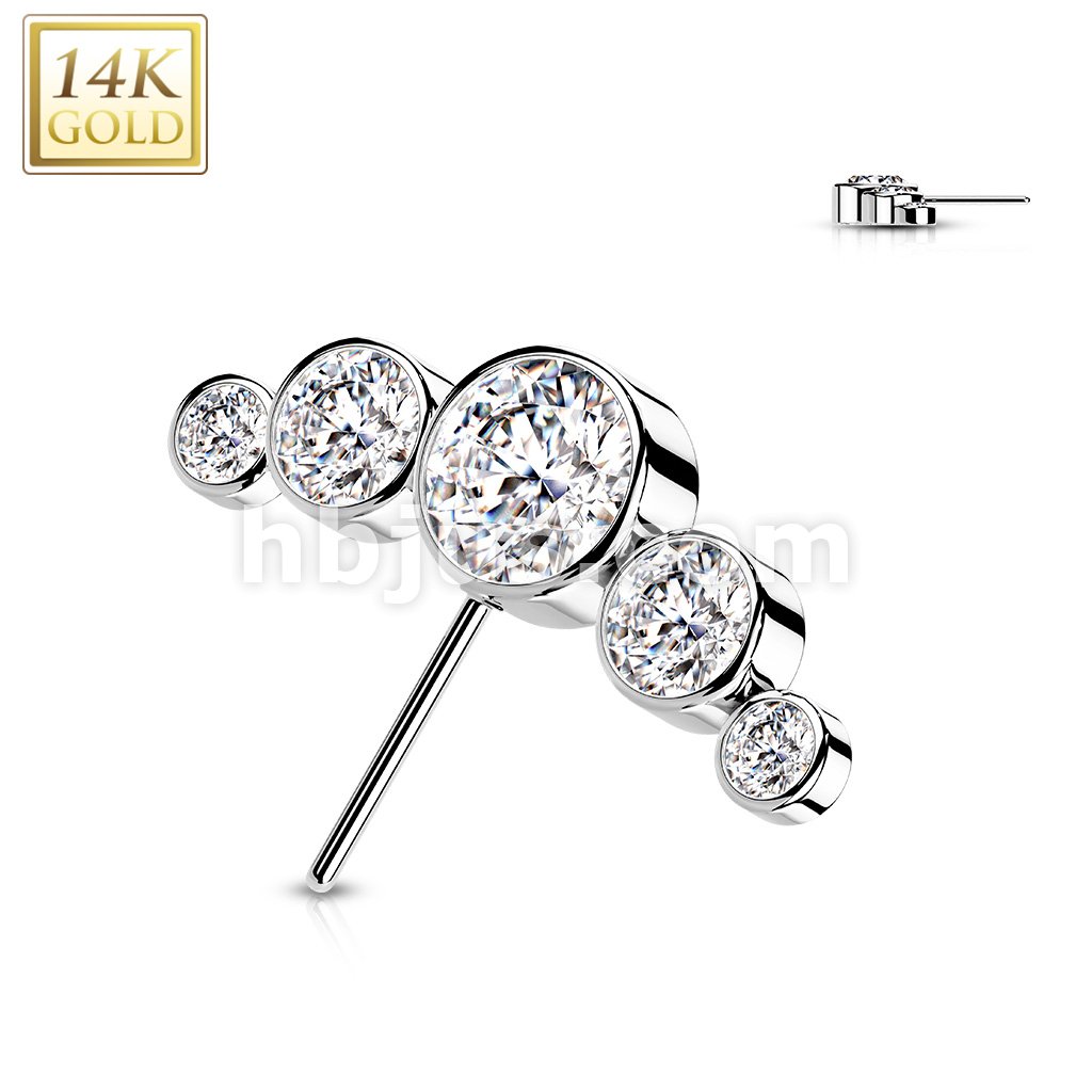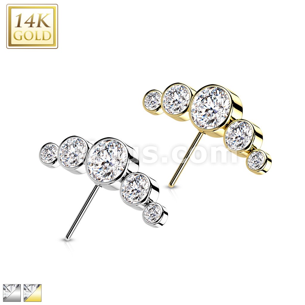 14K Gold Threadless Push In Front Facing 5-Round CZ Bezel set Curved Top