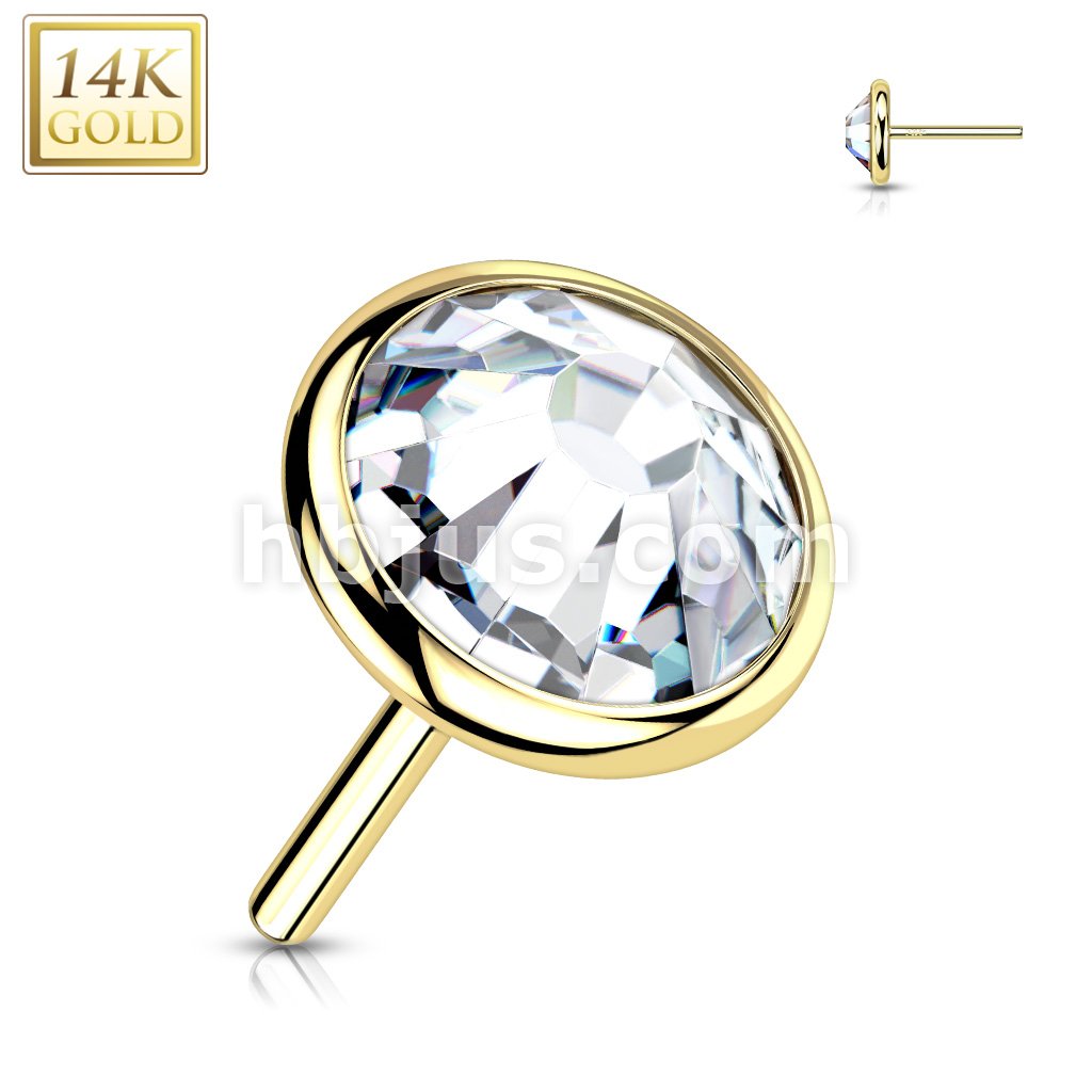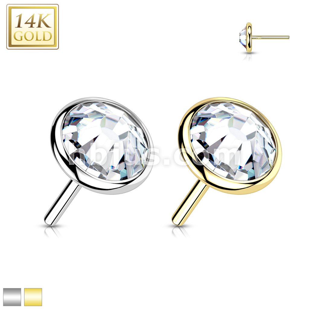14K Gold Threadless Push In Flat Gem Top